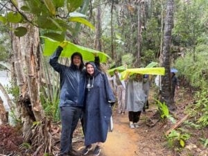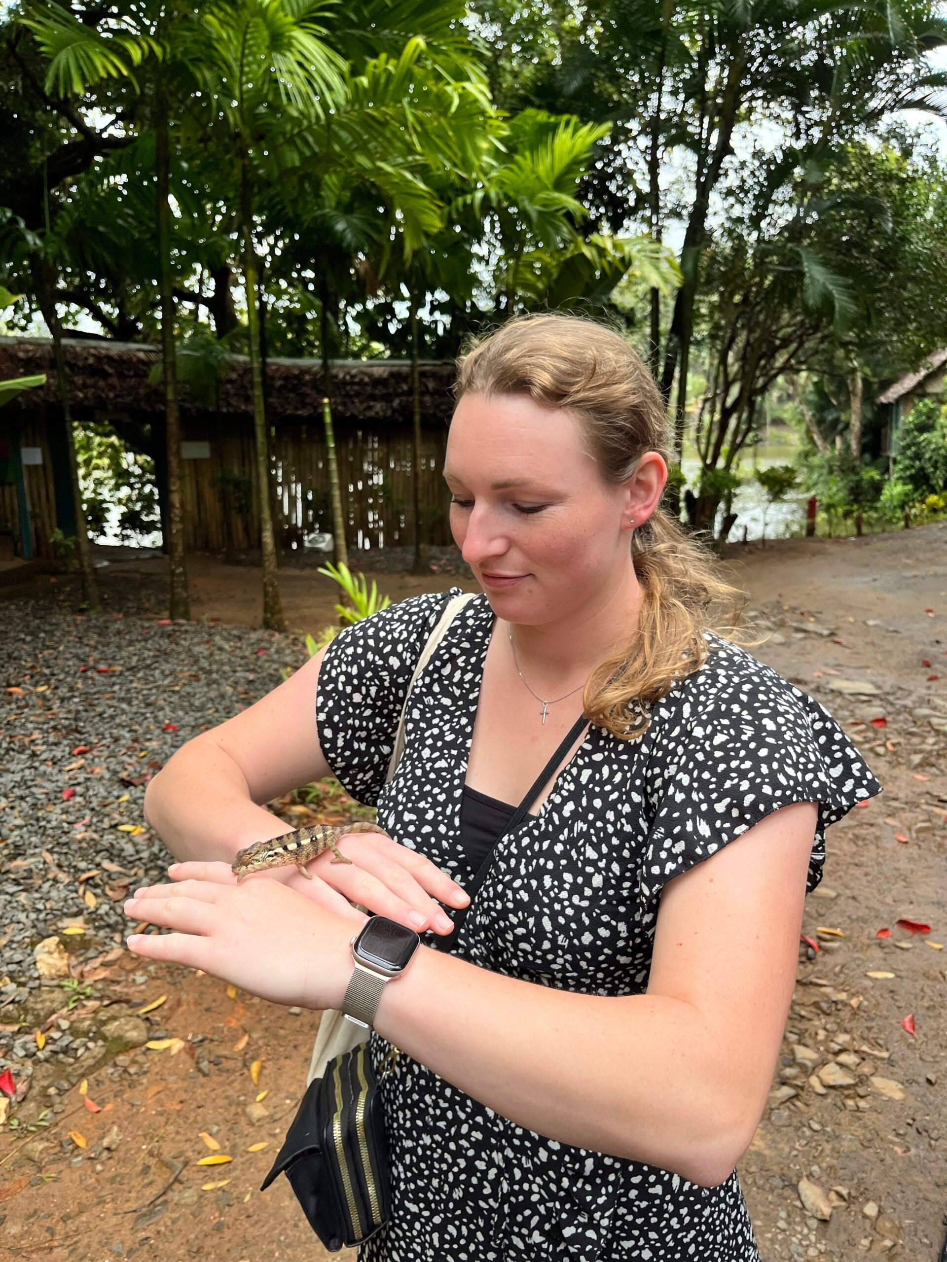 Wat is Madagaskar prachtig. Gelukkig hebben we af en toe ook de kans gehad om van het schip af te gaan en het land te verkennen. Ondanks dat het droogteseizoen officieel begonnen is, valt er nog best behoorlijk wat regen. Maar dat maakt de omgeving groen en zo mooi! En, als je een regenponcho kan lenen, is het echt geen straf om op pad te gaan en verschillende soorten maki’s te spotten of te wandelen door de prachtige natuur (terwijl je een groot bananenblad als paraplu gebruikt)!