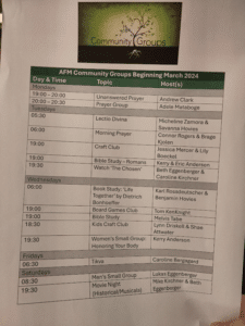 Er zijn bijvoorbeeld ook diverse “Community Groups” rond diverse thema’s: bijvoorbeeld Bijbelstudie, handvaardigheid, muziek, boeken, kunst, film, spelletjes, fitness etc. :