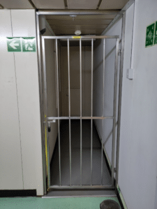 Maar het is hier aan boord trouwens ook niet altijd pais en vree hoor… Er zijn aan boord ook twee gevangeniscellen: