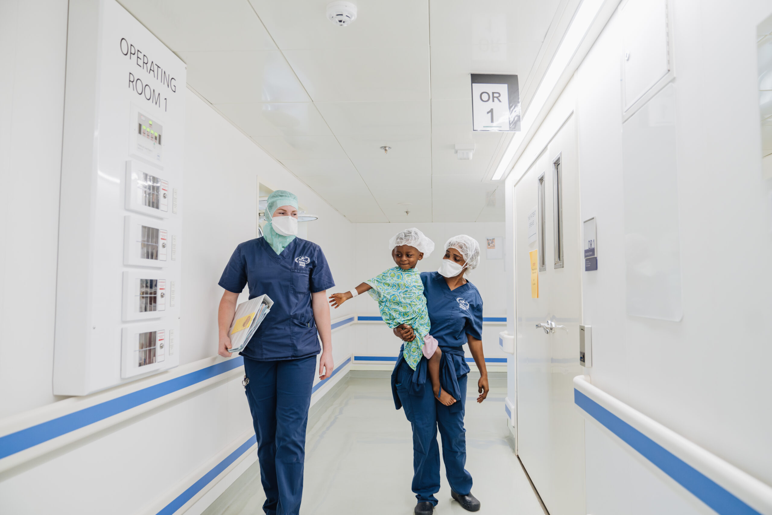 Het werken in de operatiekamers op het schip is echt teamwork. Er zijn zoveel aspecten dat het werken met Mercy Ships bijzonder maakt. Een van die dingen is, het samenwerken in een team met zoveel verschillende chirurgen / anesthesiologen / operatieassistenten / anesthesiemedewerkers uit verschillende landen, en dat het “gewoon” werkt EN dat er een verschil gemaakt kan worden. Het gevoel en de sfeer is lastig weer te geven met een geschreven update, maar het zou geweldig zijn om iets ervan mee terug te nemen naar Nederland. Net als veel opgedane kennis – met dank aan alle uitleg en training van een mede Dutchie en topvoorbeeld. Want naast aan de slag te gaan als operatieassistent, mocht ik ook werken als OR team lead voor de Max-Fax operaties (de mond-,kaak-, aangezichtschiurgie). Hard werken, maar door de extra taken en samenwerking met het pre-operatieve team en de ward, krijg je ook de kans om het hele proces van de patienten mee te maken.