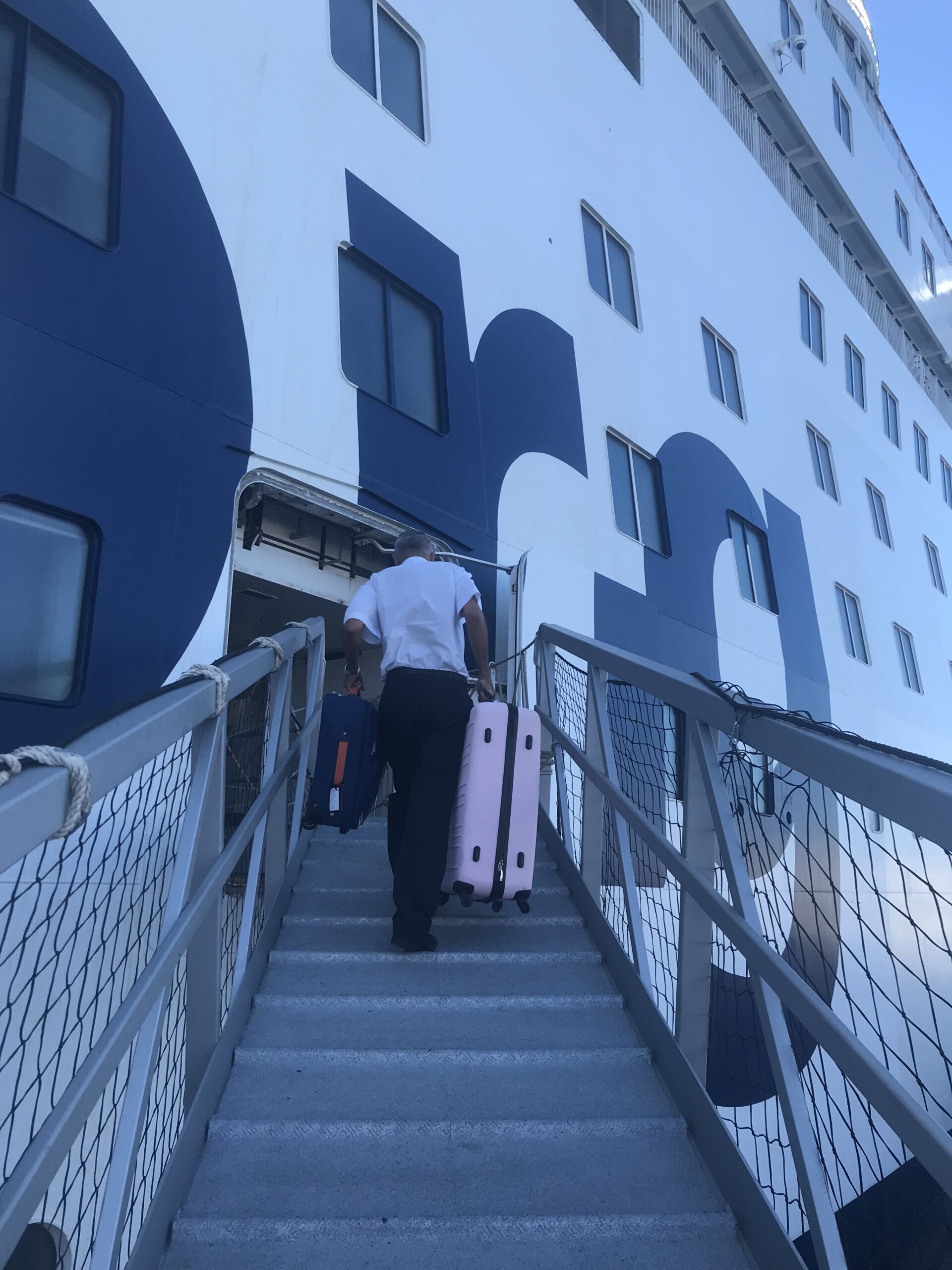 Voordat we de haven inreden, ging de snelheid er even uit om het handmatige raampje te openen voor de Spaanse douane. Even zwaaien, een vriendelijke lach en we mochten door. We stopten aan stuurboordzijde om alles uit te laden. Omdat er niet direct welkomstcomité in beeld kwam, deed de taxichauffeur ‘iene miene mutte’ om een van de loopplanken te kiezen. Heel toevallig koos hij de minst steile trap naar dek 4 en stond erop om mijn twee koffers naar boven te dragen. Het voelde als de eerste keer dat ik de trap opliep, maar eigenlijk was het de tweede keer (in maart bezocht ik de Global Mercy in Rotterdam). In geen velden of wegen was iemand te bekennen. Het gebaar van de taxichauffeur was duidelijk: zijn taak zat erop en dus liet hij mij alleen. Fijn. Na enkele deuren te hebben geprobeerd, besloot ik mijn koffers te laten staan en de trap weer naar beneden te nemen. Toch maar de meer steile trap naar dek 5. Eenmaal weer boven had ik mijn eerste ontmoeting met de ‘Gurkha’s’, de Nepalese beveiliging van het schip. Gurkha’s hebben een hele interessante geschiedenis, wellicht volgt daar later meer over. De Gurkha stuurde mij door de glazen deuren naar de receptie. De receptie ving mij heel vriendelijk op en al snel werd ik gekoppeld aan iemand van Hospitality, die mij een rondleiding over het schip gaf en mijn eigen ‘cabin’ liet zien. Voor nu mijn eigen cabin, want vanaf maandag krijg ik een Canadees huisgenootje die ook in mijn huishoudingteam zit. Overweldigd door de vele gangen en hoeken van het schip, probeerde ik mij te oriënteren op bakboord/stuurboord en voorkant (bow) en achterkant (aft). Ik wist in ieder geval binnen 24 uur dat mijn cabin op dek 5, bakboord en aft zat. Vandaar mag ik de in totaal twaalf dekken gaan verkennen de komende dagen.