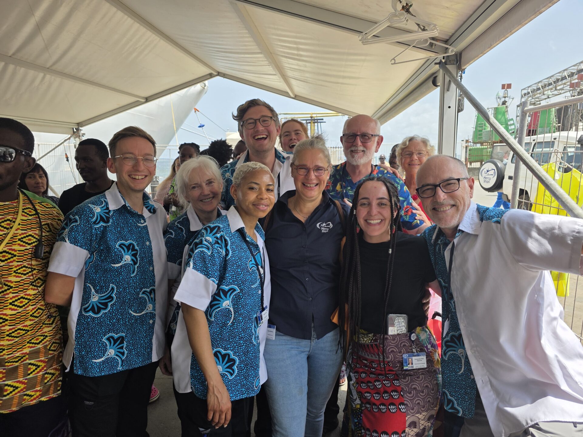 Zaterdagochtend ben ik met een groep (in twee auto’s van Mercy Ships) naar een weeshuis geweest. Het weeshuis is opgestart door twee locals die eerder voor Mercy Ships gewerkt hebben. Het ligt een aardig eindje buiten Freetown, een deel over “gewone” wegen, maar ook een stuk off road, waar zelfs de vierwheel drive moeite mee had. De kinderen stonden ons al zingend op te wachten. Er was een programma gemaakt waarbij we diverse behendigheids spelletjes hebben gedaan.