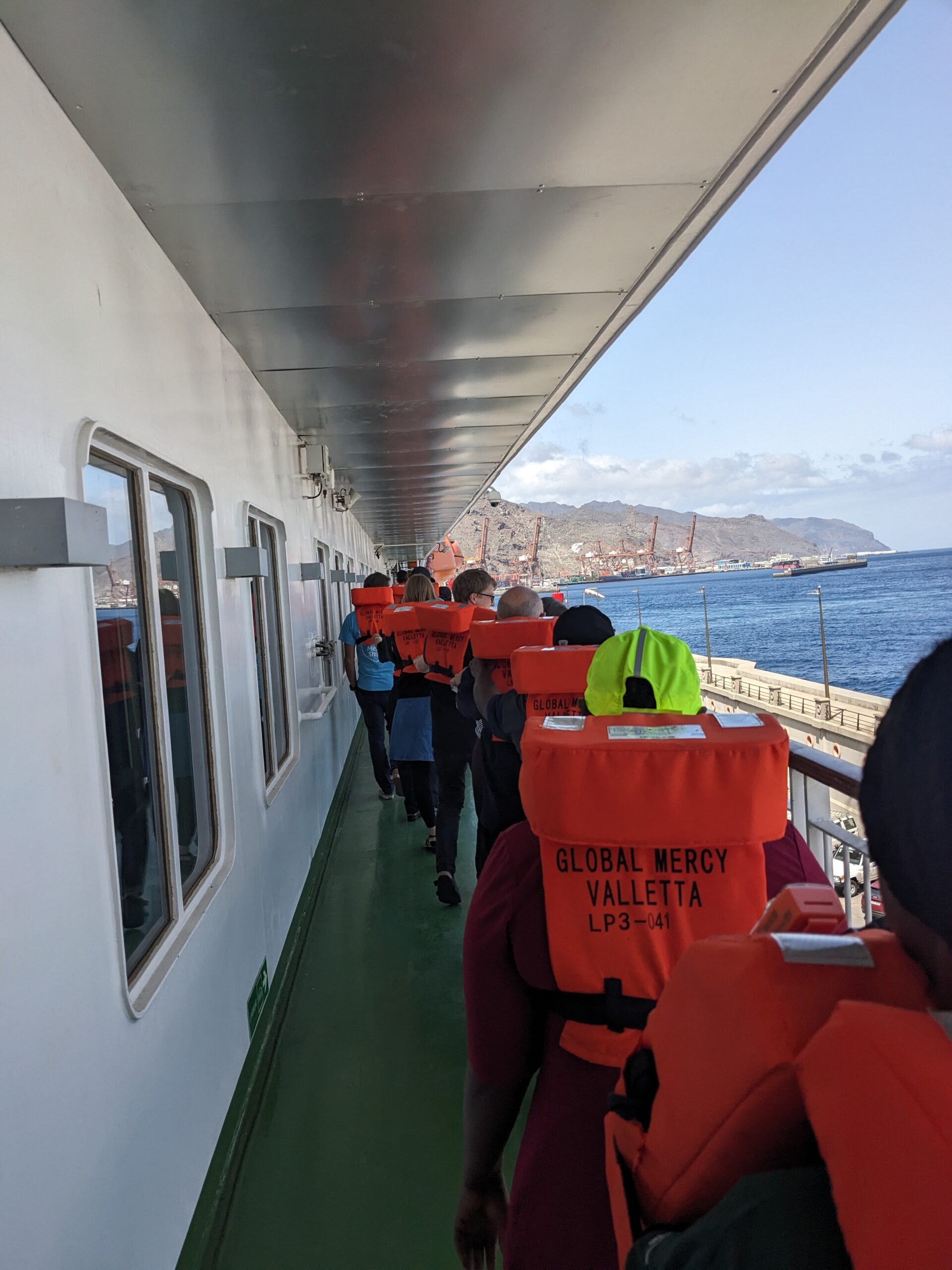 Inmiddels heb ik ook mijn eerste fire drill meegemaakt. Normaal gesproken is er elke donderdagmiddag een oefening, maar tijdens de onderhoudsperiode gaat alles een beetje anders dan anders. Pas hadden we een ‘At sea’ fire drill, voor alle crew die mee zal varen naar Sierra Leone. Bij deze fire drill hebben we geoefend met het ontruimen van het schip, zoals dat op zee in zijn werk zou gaan. We moesten allemaal verzamelen bij onze toegewezen plek op het schip, daar kregen we een lifejacket aan en daarna moesten we naar buiten lopen richting de lifeboats. Natuurlijk hopen we dit niet nodig te  gaan hebben, maar het was wel leuk om dit een eerste keer zo te oefenen.