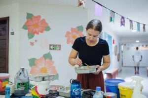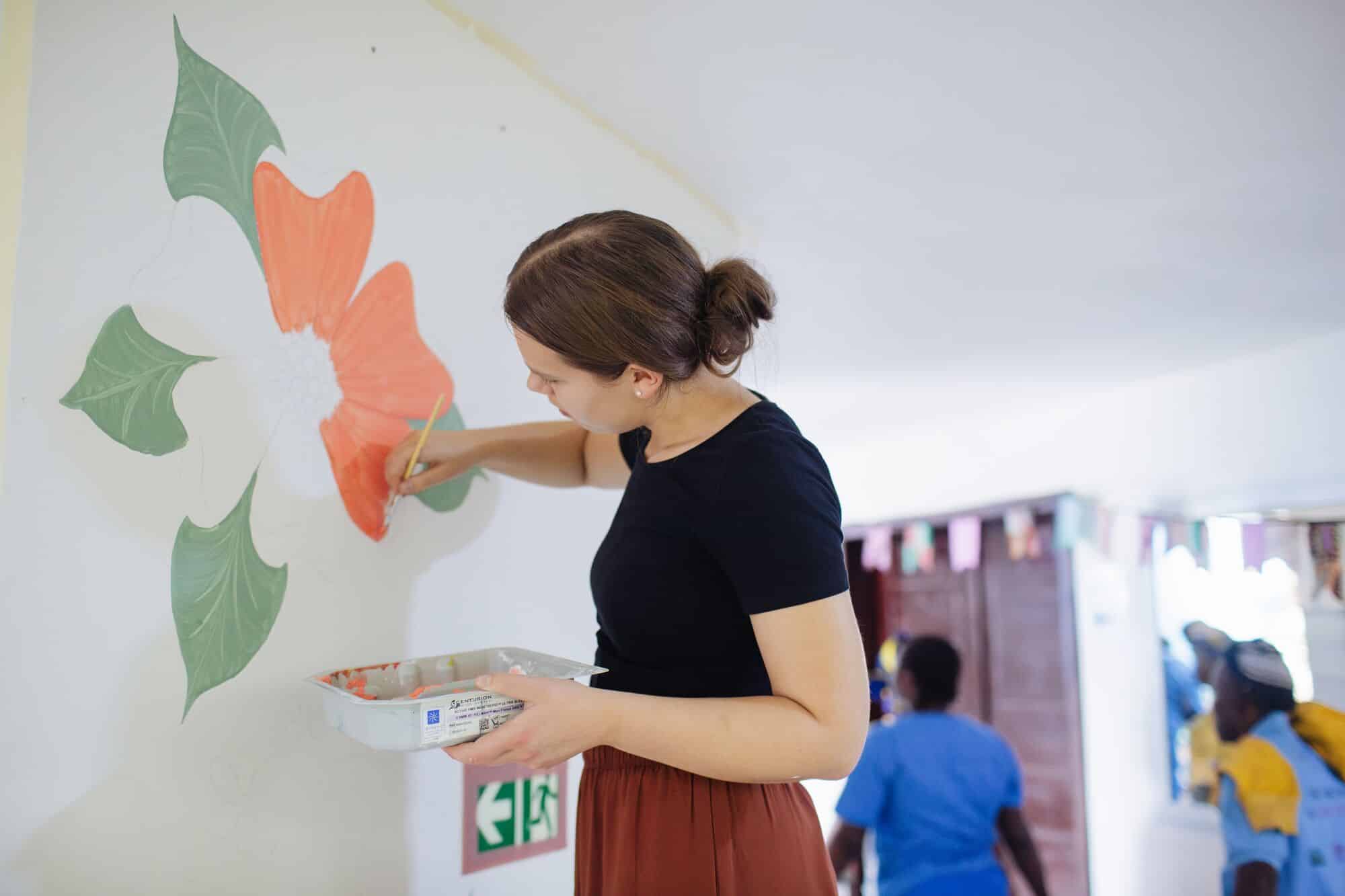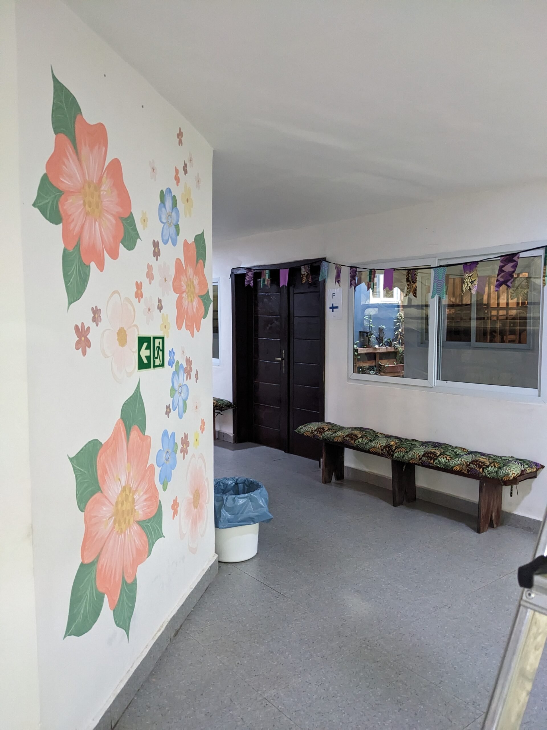 Ik mocht die dag een muurschildering maken in het Hope Center. Terwijl ik hiermee bezig was, werd ik steeds omringd door de patienten die er waren. Een van de patienten was een jongen van nog maar een paar jaar oud, met een enorme tumor bij zijn kaak. Zo’n klein jongetje met zo’n ernstige aandoening, maar wat was hij blij en vrolijk! Hij sprong rond met een ballon en wilde met iedereen spelen en overgooien. Zo bijzonder om te zien. Ondanks zijn omstandigheden was hij zo opgewekt! Het Hope Center is een bijzondere plek, als je er binnenloopt merk je dat gelijk. De crew en daycrew die er werken, doen zulk goed en prachtig werk! Het is zo’n fijne en warme plek voor patienten om voor en na hun operatie te verblijven. Maar naast alle vrolijkheid en dankbaarheid is er af en toe ook verdriet. Van sommige patienten die ik die dag in het Hope Center ontmoet heb, heb ik later gehoord dat ze geen operatie kunnen krijgen. Dit kan heel veel verschillende redenen hebben. Op het schip kunnen we maar bepaalde soorten operaties uitvoeren, soms zijn ingrepen te gevaarlijk of soms hebben ingrepen bepaalde (na)zorg nodig die we op het schip niet kunnen bieden (bijvoorbeeld bestraling in het geval van kwaadaardige tumoren). Het jongetje waar ik het over had, zal opgroeien met zijn tumor en zal daar uiteindelijk aan overlijden, onvoorstelbaar.