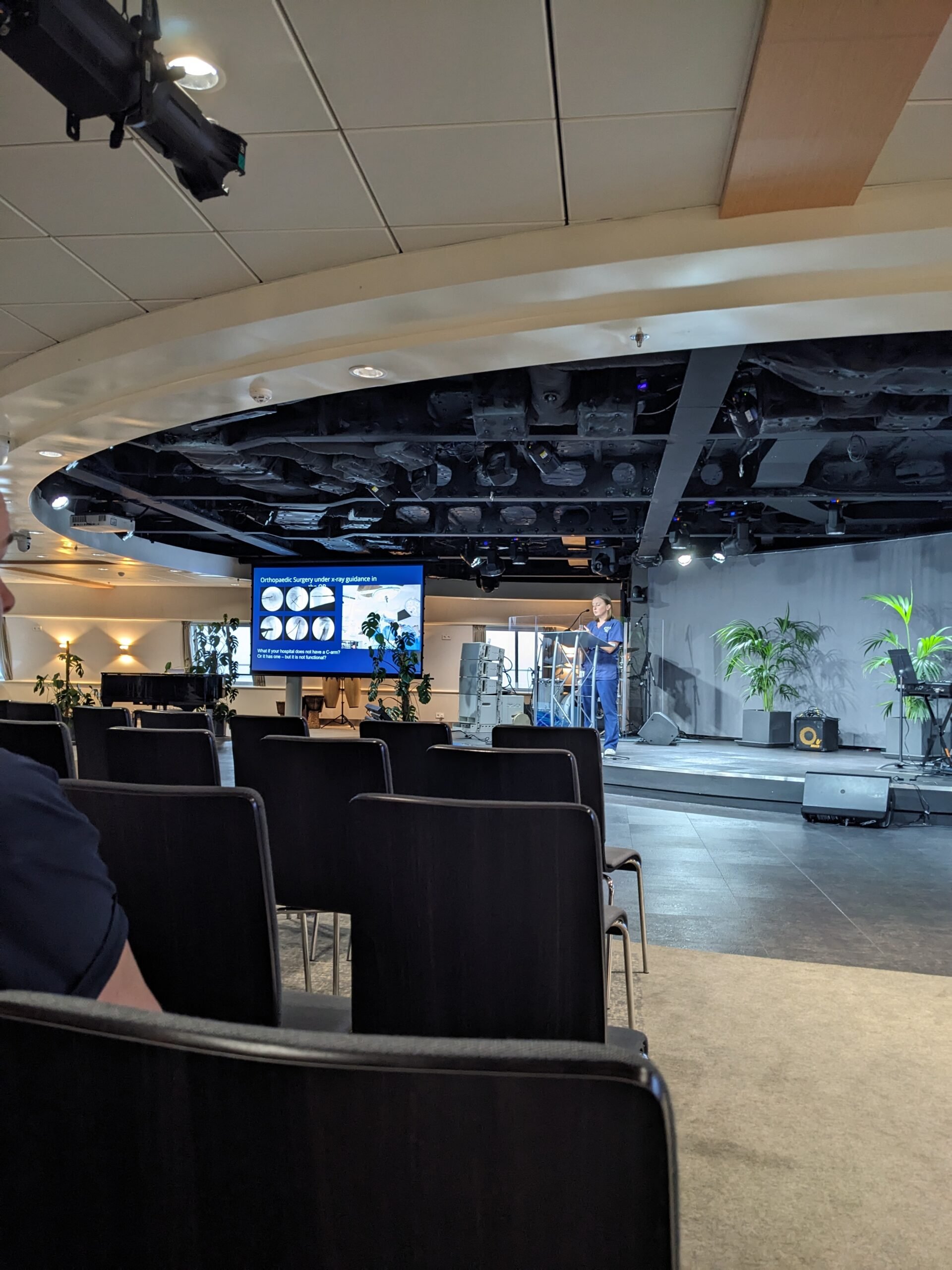 Sinds de fieldservice echt is begonnen, worden er ook wat extra activiteiten georganiseerd aan boord. Een van mijn favorieten, is de wekelijkse medical in-service op woensdagavond. Dit is een soort hoorcollege over een bepaald medisch onderwerp. Allerlei onderwerpen en vakgebieden komen aan bod. Soms vertelt een chirurg wat over zijn/haar ervaringen, geeft een anesthesist een college over de basis van anesthesie, of krijgen we een college over hoe de biomedische ondersteuning van het ziekenhuis aan boord is geregeld. Heel interessant om meer te leren over hoe alles, in dit toch wel hele unieke drijvende ziekenhuis, in zijn werk gaat!