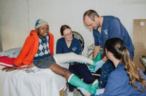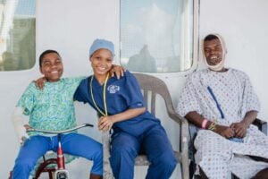 Op dit moment zijn we midden in het orthopedische blok beland. De dit betekent dat we alleen orthopedische operaties bij kinderen uitvoeren op de kinderafdeling waar ik werk. Kinderen worden geopereerd aan hun x- en o-benen, verlening van hun achillespees en klompvoeten. Vooral operaties aan de x- en o-benen zijn erg ingrijpend voor de kindjes. Het zijn enorme x- en o-benen waar de kindjes hier mee lopen en na een operatie, waar botten letterlijk worden gebroken, zitten ze weken in het gips zodat botten weer aan elkaar kunnen groeien. De eerste dagen hebben ze veel pijn, mogen ze niet uit bed en kunnen ook veel jeuk ervaren omdat hun benen in het gips zitten. Hartverscheurend om die grote tranen over hun wangen te zien biggelen en hun gehuil te moeten horen. Sommige kindjes zijn nog maar 3 jaar oud. We lopen rond met paracetamol, ibuprofen, morfine, laxantia en ijspacks. En blijven maar zeggen dat ze het zo goed doen. Wanneer fysiotherapie de eerste keer met ze heeft geoefend mogen wij het in onze dienst overnemen. Dit betekent om de paar uur bed oefeningen en naar en van toilet dragen, totdat ze van fysio toestemming hebben om hun benen te mogen belasten. Na een dag of drie na een operatie zie je langzaam weer de glimlachjes voorzichtig op de gezichtjes komen. En weet je waar je het voor doet; over een paar maanden kunnen ze weer rennen, spelen, naar school, vriendjes maken; kortom: terug naar de maatschappij. Om een voorbeeld te geven waarom gratis operaties nodig zijn; er was een kindje die niet goed ging na een operatie en waar we ons zorgen om maakten. Een van de dingen was dat ze niet wilde eten. Bleek dat ze de rijst niet luste, want deze was te hard gekookt. Rijst was ze niet gewend om te eten, want voor de familie te duur om te kopen. En als rijst hier al te duur is…..