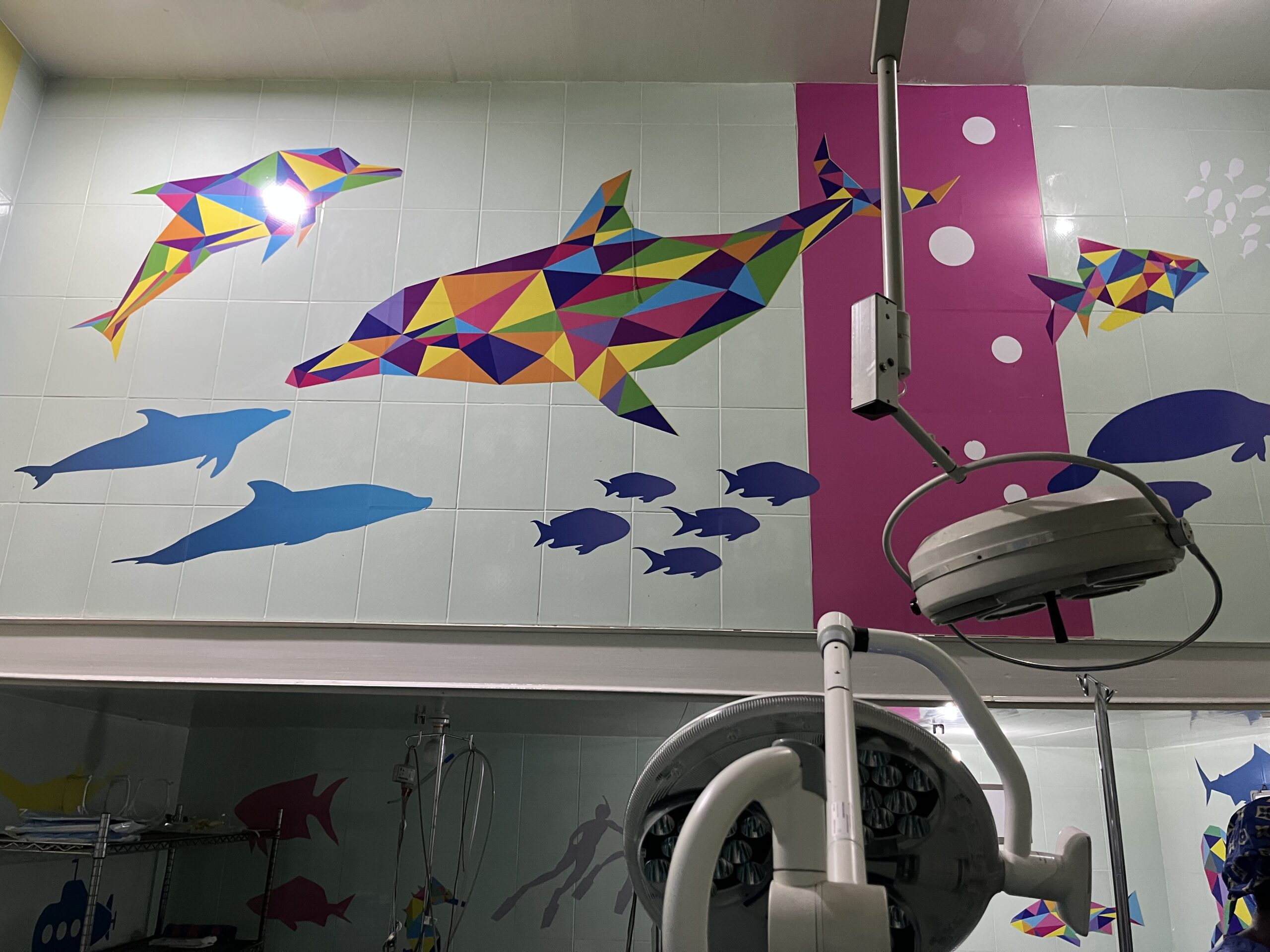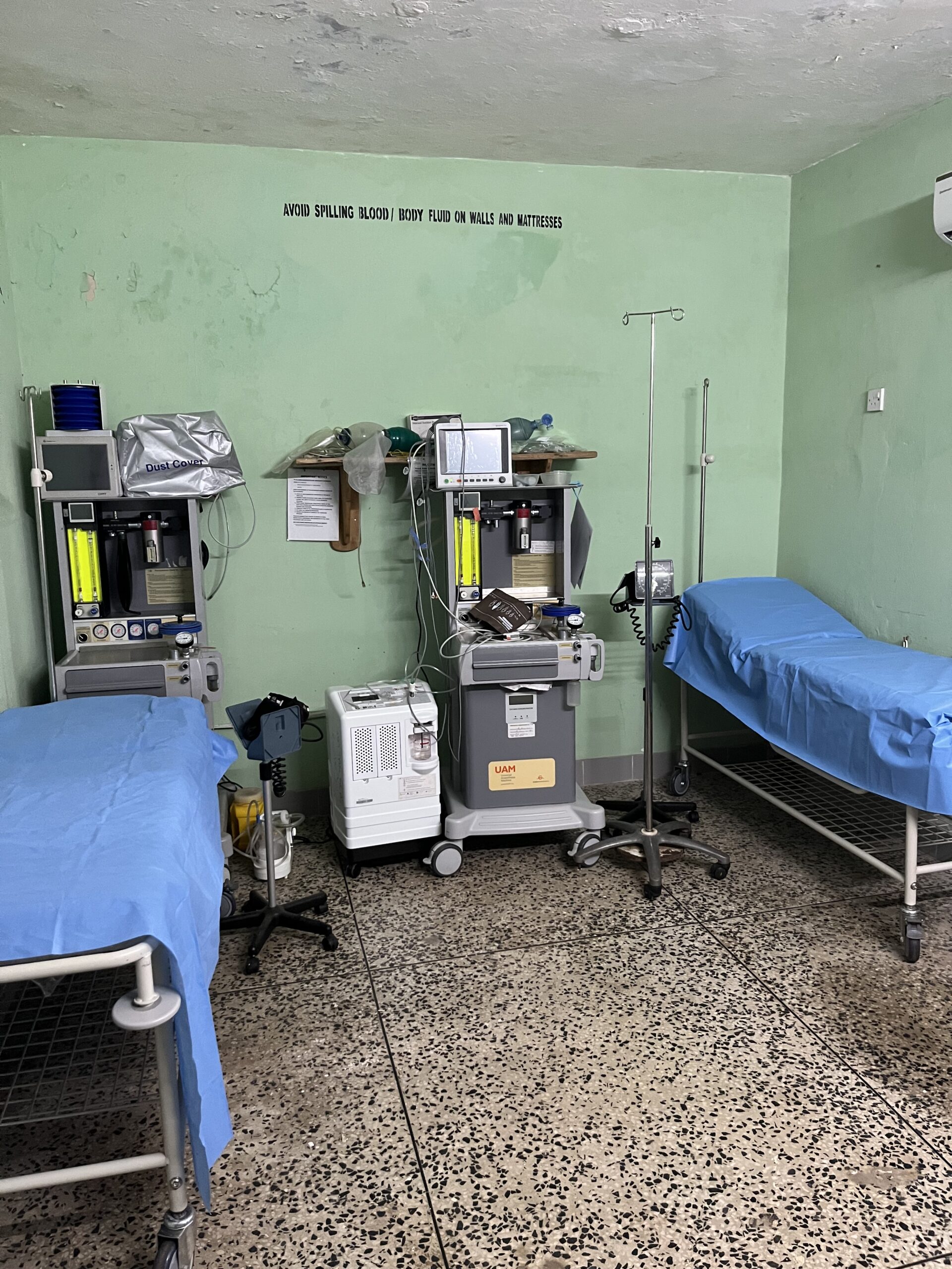 Vervolgens gingen we naar de operatie kamers. De operatie tafels en anesthesie machine zijn prima. Ze functioneren en zijn een donatie van andere organisaties. Maar het gebouw is oud, de verf bladdert van muren, de vocht plekken zitten in het plafon. Te bedenken dat het een steriele omgeving moet zij is bijna niet te doen hier. Maar ik vond het zo mooi om te zien hoe trots de verpleegkundige waren met hun kamers en machines die werkte. Ze waren al dankbaar met de minimale dingen. Sinds vorig jaar hebben ze een van de kamers veranderd in een PACU (recovery room). De verpleegkundige die daar werkt is voor een aantal weken op het schip geweest om getraind te worden en ze was zo trots op haar kamer. Ze wilde alles laten zien en uitleggen hoe het werkte en wat voor patiënten ze zag.