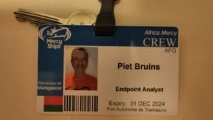 Had mijn Oranje (Nederlandse) Mercy Ships shirt aan die dag en moest toen ik de foto zag aan Guantánamo Bay denken… De dame achter de receptie blijkbaar ook want rechtsboven heeft ze AFG van Afghanistan neergezet… 😉