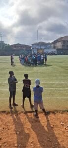 Aan boord wonen nu ruim 500 medewerkers en samen vormen we een mooie community. Heel bijzonder om daar deel vanuit te maken, maar het duurt even voordat je mensen leert kennen. Mijn eerste contacten zijn tijdens mijn dag in de bakkerij gelegd. En werd ik uitgenodigd om afgelopen zaterdag mee naar het strand te gaan. Fijn om even van het schip af te zijn en bijzonder om al een klein deel van het land te mogen zien. ‘s Avonds hadden we een verjaardag van één van de On boarding kids en hebben we in de stad bij een pizza restaurant en ijssalon gegeten. Zondag zijn we met een grote groep naar een voetbal wedstrijd van Mercy Ships tegen een team van een lokale kerk gegaan. Mercy Ships heeft met de laatste penalty de wedstrijd gewonnen. ‘s Avonds hadden we tijdens de kerkdienst aan boord de officiële afsluiter van het On boarding programma, we hebben allemaal persoonlijk ingestemd met het lid worden van de Community of Faith aan boord. Daarmee is het On boarding programma officieel afgelopen en betekent het dat we allemaal aan de slag gaan in ons eigen vakgebied.