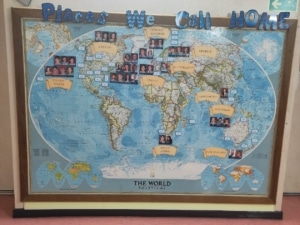 De klassen zijn heel klein en bij het vak aardrijkskunde wordt o.a. deze kaart gebruikt: