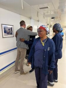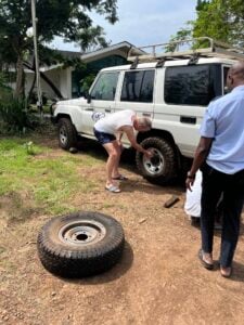 Het was een hele onderneming om hier te komen en de eerste dag hebben we dan ook rustig aan gedaan en heb ik ze rondgeleid over het schip. Even een bezoekje gebracht aan de verpleegafdeling en naar de veranda geweest om even te spelen met de patiënten. De volgende dag heb ik ze meegenomen Freetown in. We gingen met een Keke naar de markt om wat souvenirs te kopen en dit is een hele ervaring. het verkeer krioelt hier door elkaar heen, geen echte regels dan ik ben groter dus ga voor. Gaten in de weg waardoor iedereen aan het slalommen is over de weg om ze te vermijden. De drukte van mensen op straat, het lawaai, overaal staan radio’s aan die schreeuwen wat ze verkopen, het getoeter van de motors, Keke’s en auto’s. Een hoop indrukken. En toen de markt in een gebouw met 2 verdiepingen, warm en smalle paden tussen de stands in. Iedereen die wil dat je wat van ze koopt, voor je het weet hebben ze bijna een rok om je heen geslagen om te passen en dan nog het afdingen van de prijs. hierna zijn we wandelend naar de fabric marked gegaan. Een wandeling die ik niet snel zal vergeten en me stil zetten hoe dankbaar ik mag zijn voor het gezin waarin ik ben opgegroeid.
