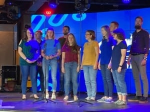 Afgelopen donderdag voerden we met de ‘Key of Sea’ (het Mercy Ships koor) ‘The Chordbuster March’ uit tijdens de ‘Community Gathering’. In de afgelopen weken hebben we hard geoefend om wat moois neer te zetten en het resultaat mocht er zijn. Het muziekstuk gaat over het zingen van akkoorden met vier verschillende (zang)partijen. Het was leuk om te zien dat niet alleen wij lol hadden, maar dat de hele zaal meeging in de muziek. In december hopen de twee ‘Key of Sea’s’ (AFM en GLM) samen te voegen en zullen we opnieuw muziek laten horen rond kerst.