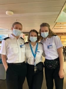Op het schip zijn er een aantal terugkerende patronen, zo is er elke donderdag een firedrill. Afgelopen donderdag was dus mijn eerste. Onze safety officer komt elke week met bizarre situaties, zodat het safety team overal op getraind wordt. Deze week leek het hem grappig om mij en m’n Hospitality collega Hannah (ja, in het Engels klinken onze namen hetzelfde) in onze cabins te laten verstoppen zodra het alarm afging. Wanneer het alarm klinkt, gaat er een hele procedure in werking. Waaronder cabinchecks, dan komt er een cabinchecker langs de deuren in jouw firezone. Intussen worden op het dok bij de musterstations de namen gecontroleerd. Na een uur en meerdere evacuatie alarmen werd ik gelukkig gevonden en kwam de firedrill ten einde. Ben benieuwd of ik het overleefd zou hebben… 😉
