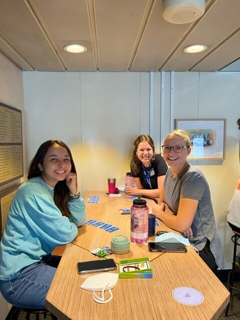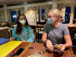 Na een werkdag zijn er nog genoeg leuke dingen te doen in en rond het schip. Tot nu toe heb ik ‘s avonds spelletjes gespeeld, gevolleybald (waarbij de volleybal tussen wal en schip viel), een presentatie bijgewoond, naar Nederland gebeld en lekker vroeg m’n bed opgezocht want het leven is hier best intensief.