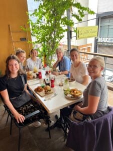 Sorry voor deze ontzettend lange blog, ik heb nog niet eens alles verteld! Dit weekend ben ik vrij. Vandaag (zaterdag) ben ik met m’n cabinmates de stad in geweest. Het oorspronkelijke plan was om naar het strand te gaan, maar helaas regende het de hele dag; het regenseizoen is in volle gang. Desalniettemin was het een hele ervaring om in m’n Hema poncho (mam je had gelijk, ik heb hem de eerste week al nodig gehad!) door de drukke straten vol plassen te lopen. Uiteindelijk hebben we heerlijk gegeten en daarna nog ergens ijs gehaald. De regen zorgt ook voor een gezellige sfeer aan boord. ‘s Ochtends deed ik een poging m’n cabinmates beverbende uit te leggen, ze hadden het aardig snel onder de knie! En ‘s avonds hebben we nog wat versieringen geknutseld voor The Hope Center, waar een van m’n roommates werkt.