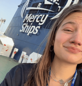 Voornamelijk mogen alleen verpleegkundige en artsen in het ziekenhuis werken. Het is daarom erg leuk om als arts in spe, met hun en andere medici op het schip te sparren over het ziekenhuis en hoe het is om met de patiënten te werken. Helaas door covid is het contact voor de reguliere crew, ik dus, erg beperkt. Verder zijn bepaalde tijden waar we ontbijt, lunch en diner hebben, moeten we voor 00:00 binnen zijn als je na werk erop uit wilt, dragen we mondkappen, testen we regelmatig op covid, en staan we dagelijks stil bij waar we hier voor zijn. Mercy Ships is van oorsprong een christelijke organisatie, de missie van de organisatie is dan ook: We follow the 2000-year-old model of Jesus, bringing hope and healing tot he worlds forgotten poor. Ook staan we bij stil het geloof en dat toen we met een morning devotion en een ceremonie gevuld met muziek op zondag in de avond.