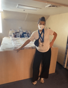 Mijn werk dagen zijn van 08:00 – 17:00 gevuld met taken die te maken hebben met de bemanning van het schip. Vooral zorgen we voor nieuwe arrivals en dat hun kamers klaar zijn. Maar ook covid is hier nog een veel besproken onderwerp. We verzorgen daarom ook de covid isolatie kamers, en regelen het desinfecteren en aanvullen hiervan. Doordat de restricties hier erg serieus worden genomen moest ik elke dag testen bij aankomst. Daarnaast omdat we de patiënten moeten beschermen zijn er alleen twee momenten in de middag per week waar we als reguliere crew met de patiënten mee deck 7 op kunnen. In de operatiekamers zijn geen ramen dus in de middag neemt de verpleging de patiënten mee deck 7 op voor frisse lucht en wat zonlicht. Ik heb hier dus gelukkig een middag mee mogen kijken en mee mogen helpen met activiteiten voor de jongste patiënten die daar toen aanwezig waren. Mee waren naast de ward nurses ook de tolken. Die zijn de schakel voor de goede communicatie tussen patiënten en het ziekenhuis. De samenwerkingen en ook de gezelligheid bij de deck 7 ontmoetingen, was enorm inspirerend en bijzonder om te zien. Daarnaast worden bijna elke middag om 13:00 de geopereerde patiënten uitgezwaaid, wat ik ook twee keer heb mogen doen. Dat is toch wel het moment waar we zien en voelen waar we het hier allemaal voor doen. Deze patiënten gaan dan naar het hope centre. Dit is een soort ziekenhuisje waar de patiënten verder kunnen revalideren met hulp van geschoolde mensen. Ik zal hier later nog meer op terug komen!