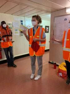 Foto’s van een At Sea Emergency Drill ter voorbereiding van op de sail: