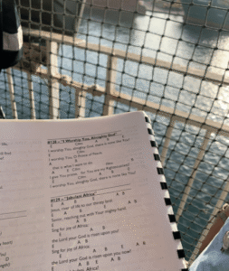 Mijn dankbaarheid voor de vriendschappen met de Afrikanen en de andere bemanning op het schip, is groot. Ik leer dagelijks, namelijk enorm veel van hen. Over de cultuur, de verschillen in het leven en toch ook de gelijkenissen die we met elkaar delen. De daycrew is voor mij de schakel tussen het toch behoorlijke westerse schip, en het echte lokale Senegalese leven. Veel van hen studeren aan de universiteit hier in de buurt en hebben een master afgerond. Een aantal van hen vindt het leuk om de mensen die niet uit Senegal komen kennis te laten maken met hun cultuur. Zo worden er tripjes georganiseerd naar de dorpen waar ze vandaan komen en ook naar lokale kerken. Zo heb ik afgelopen weekend en concert mogen bijwonen in de kerken van een van de daycrew. Twee koren waren uitgenodigd om te komen zingen, en ook zong het eigen koor van de kerk. En wat een feest was dat.