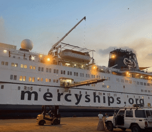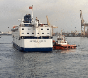 Drie uur lang werd er gezongen, gedanst en feestgevierd in het huis van god. Dit maakte nogal wat los in mij. De verschillen zijn namelijk groot hier in Afrika als ik het vergelijk met Nederland. Niet alleen de cultuur, en het eten maar de mentaliteit van Afrikanen is iets wat ik enorm bewonder. Al gauw word je hier gezien als een broeder of zuster van de ander, en beteken je al snel veel meer voor iemand dan dat je dat in Nederland zou doen. Er is een groot belang om naast het zorg leveren aan patiënten ook te kijken of de lokale bevolking op verschillende manieren zou kunnen bijdragen aan het proces, werk voor de day crew dus. Dit biedt mogelijkheden, perspectief en ervaring voor de Senegalese bevolking. Doordat er zoveel eenheid heerst op het schip zijn we in staat geweest verschillende obstakels te overkomen gedurende het hele jaar. Een hiervan was zo ook het verhuizen van dock. En wat waren we trots toen het gelukt was en alle operaties door konden gaan!