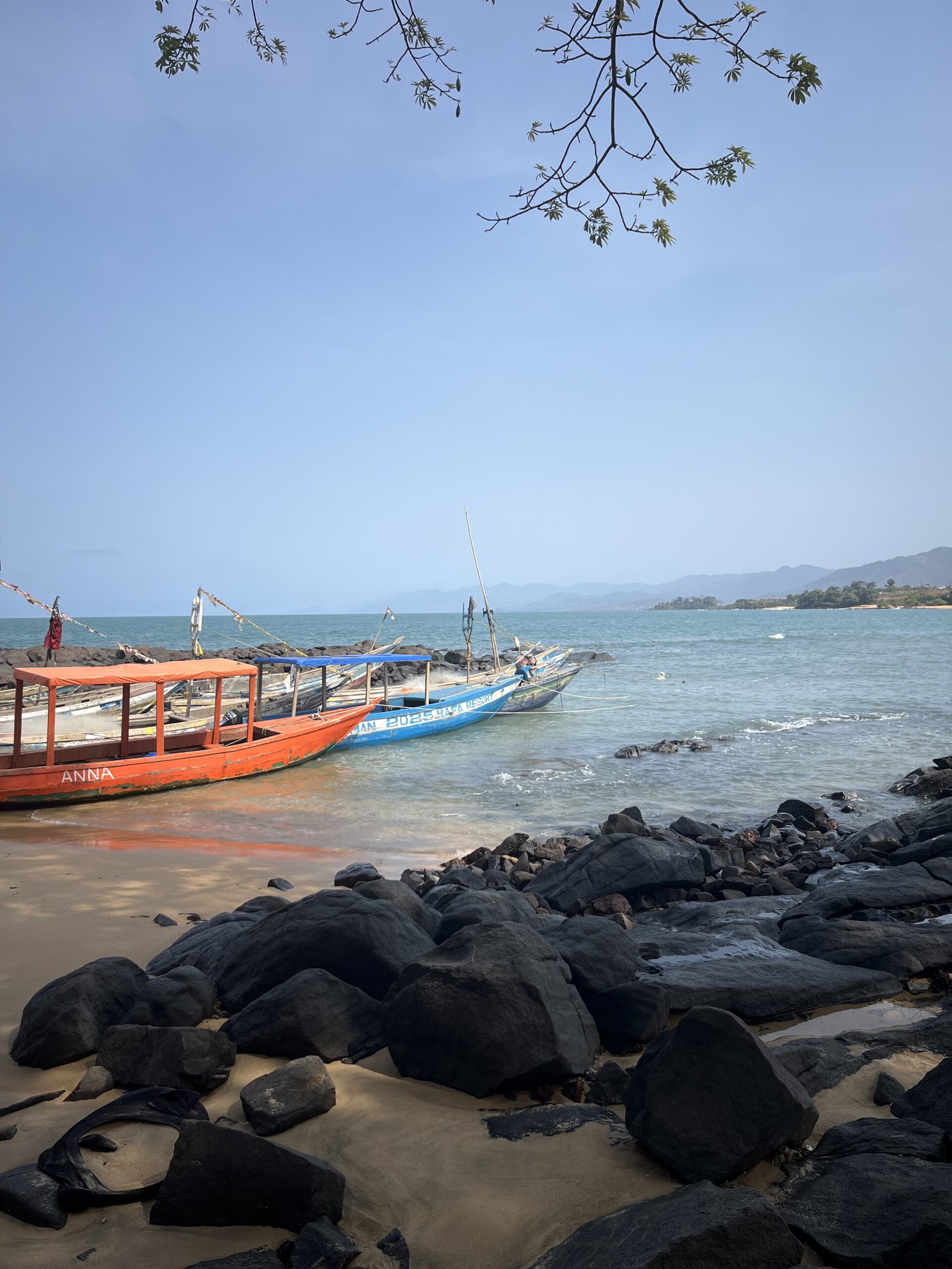 3 weekenden geleden hadden we ship holliday. ( elke 6 weken hebben we de vrijdag vrij zodat we een lang weekend hebben, tot nu toe was ik die weekenden of ziek of moest ik werken) maar nu kon ik een nachtje weg en ik heb daar erg naar uit gekeken. Ik ben met 2 collega’s naar banana island geweest. Even weg van het schip en de communitie en genieten van de natuur en frisse lucht. Zoals altijd is het een onderneming om daar te komen. We namen eerst een taxi voor 1 uur en 15 minuten en daarna hebben we een boot genomen naar het eiland toe. Het is altijd de vraag hoe veilig die boten zijn, soms zie je ze er water uit scheppen onder weg naar hun bestemming, maar gelukkig was onze boot van prima kwaliteit voor hier. Na een half uurtje varen kwamen we aan en kregen we een korte rondleiding over het terrein. We sliep in een grote tent met een ventilator. Het was gelukkig prima te doen ‘s nachts. Tent doeken open en muggendoek dicht, Er stond een klein windje wat maakte dat het prima was ‘s nachts. Luisterend naar de golven en de vogels in slaap vallen, ik heb het meer gemist dan ik door had. De dag van aankomst hebben we eerst heerlijk gerelaxt liggen en luisteren naar de natuur. Daarna hebben we een historische rondleiding gehad over het eiland. Goed om ook een stukje te horen over het slaven verleden en wat ze hebben doorgemaakt op het eiland. Het einde van de wandeling eindigde op een prachtig stukje strand waar we hebben genoten van de zonsondergang. De volgende dag hebben we weer heerlijk rustig aan gedaan en genoten van de omgeving. ‘s Middags zijn we weer terug gegaan naar het schip. Het was heerlijk om even weg te zijn en in de natuur te zijn. Merk dan toch dat ik op een schip woon en in de grote stad leef. Er zijn wel bomen en groen langs de weg, maar de lucht is niet fris. Er is vaak veel smok van de stad.