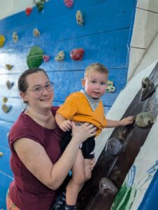 Gezellig een uurtje naar de klimhal met een gezin aan boord.