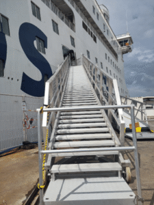 En bij het schip stonden weer Mercy Shippers klaar om onze koffers naar boven te brengen, vijf verdiepingen omhoog via een lange en steile trap: