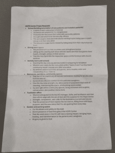 Donderavond werd er een Hope Center Prayer Walk georganiseerd. De eerste patiënten komen volgende week dus er was nu nog alle ruimte. We waren er met zo’n dikke honderd vrijwilligers en werden in groepen rondgeleid en op diverse plaatsen was er gelegenheid voor gebed. Hardop of in jezelf, in het Engels of in je eigen taal. Voor de patiënten, het ziekenhuis, de vrijwilligers, veilige reizen van en naar huis etc. etc. Bijzonder om mee te maken en prachtig om die gebeden te horen in verschillende talen!