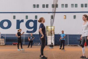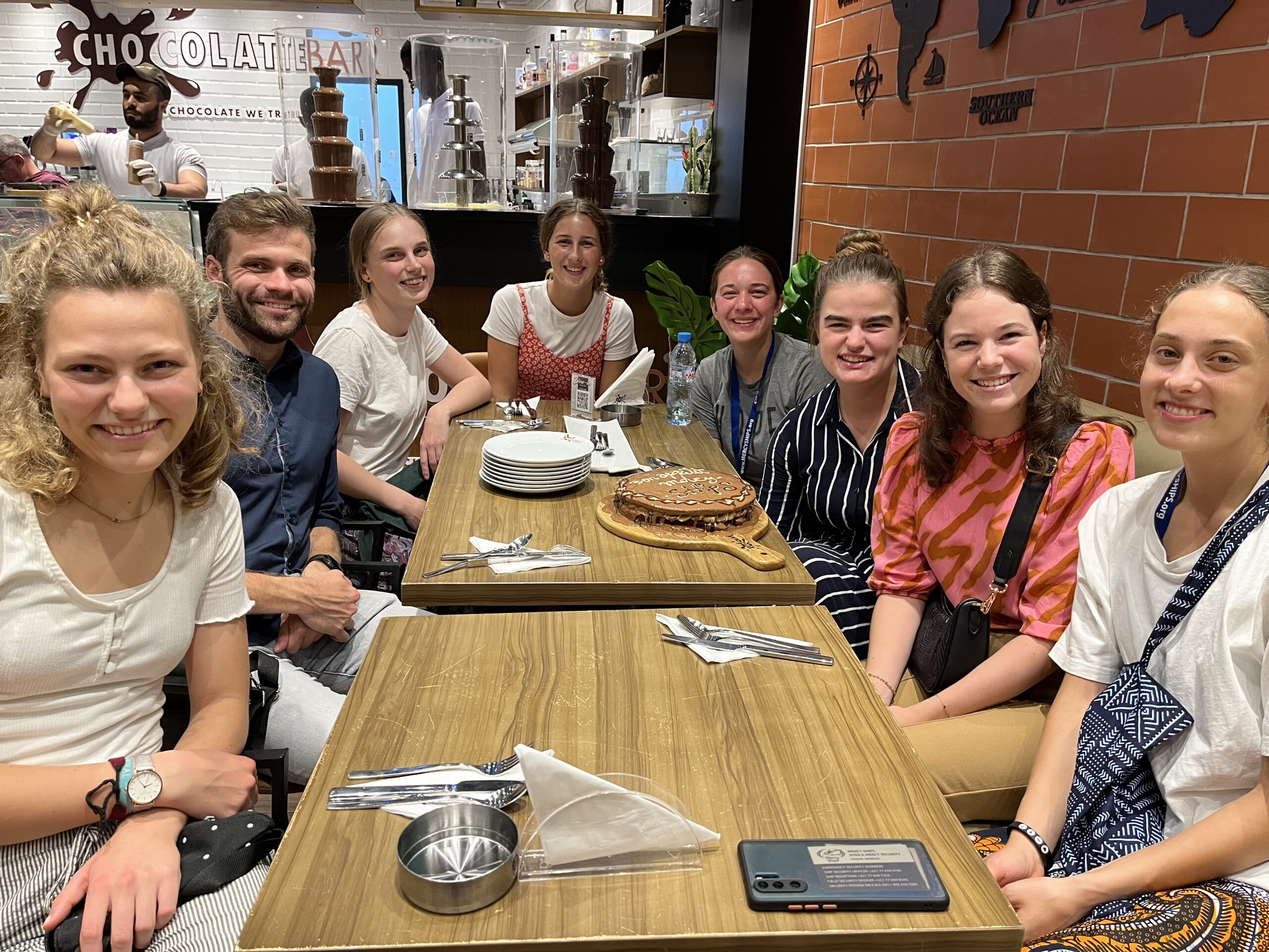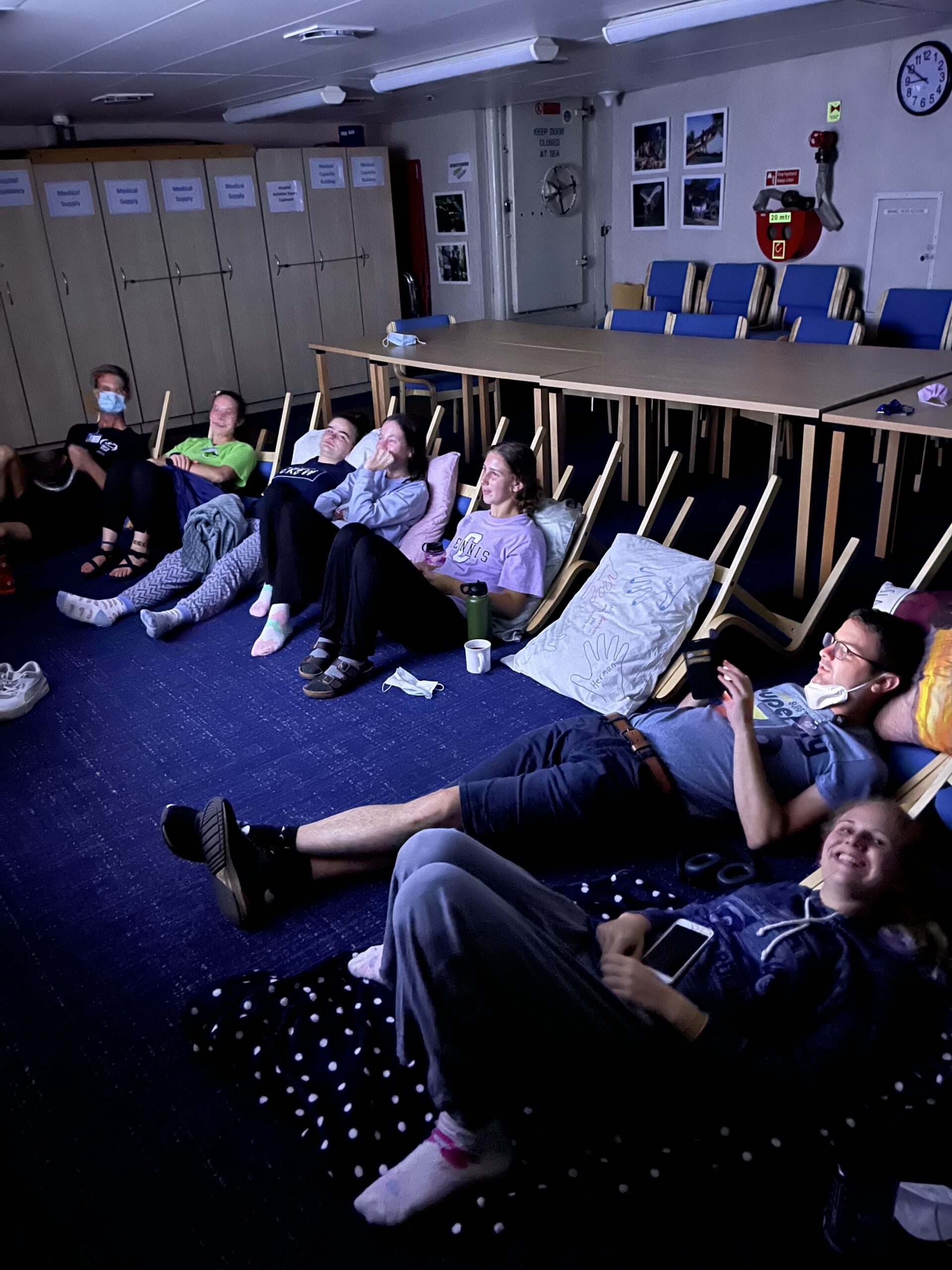 Vorige week zondag was mijn eerste kerkdienst op het schip. Vanwege de regen werd de dienst binnen gehouden en mocht er voor het eerst binnen gezongen worden! De Hospital Director hield een preek rondom het thema ‘Stand Firm’. Erg mooi en die boodschap heb ik wel nodig gehad in deze drukke week op het schip. Na de dienst was er een Dutchies night, buiten op dek 7. Op een gegeven moment kwam er ook een niet-Nederlandse vrijwilliger naar buiten, die in het Nederlands tegen ons begon te praten; ‘welterusten’, ‘hoe gaat het?’, ‘slaaplekker’. De Nederlandse invloeden dringen hier diep door! 😉