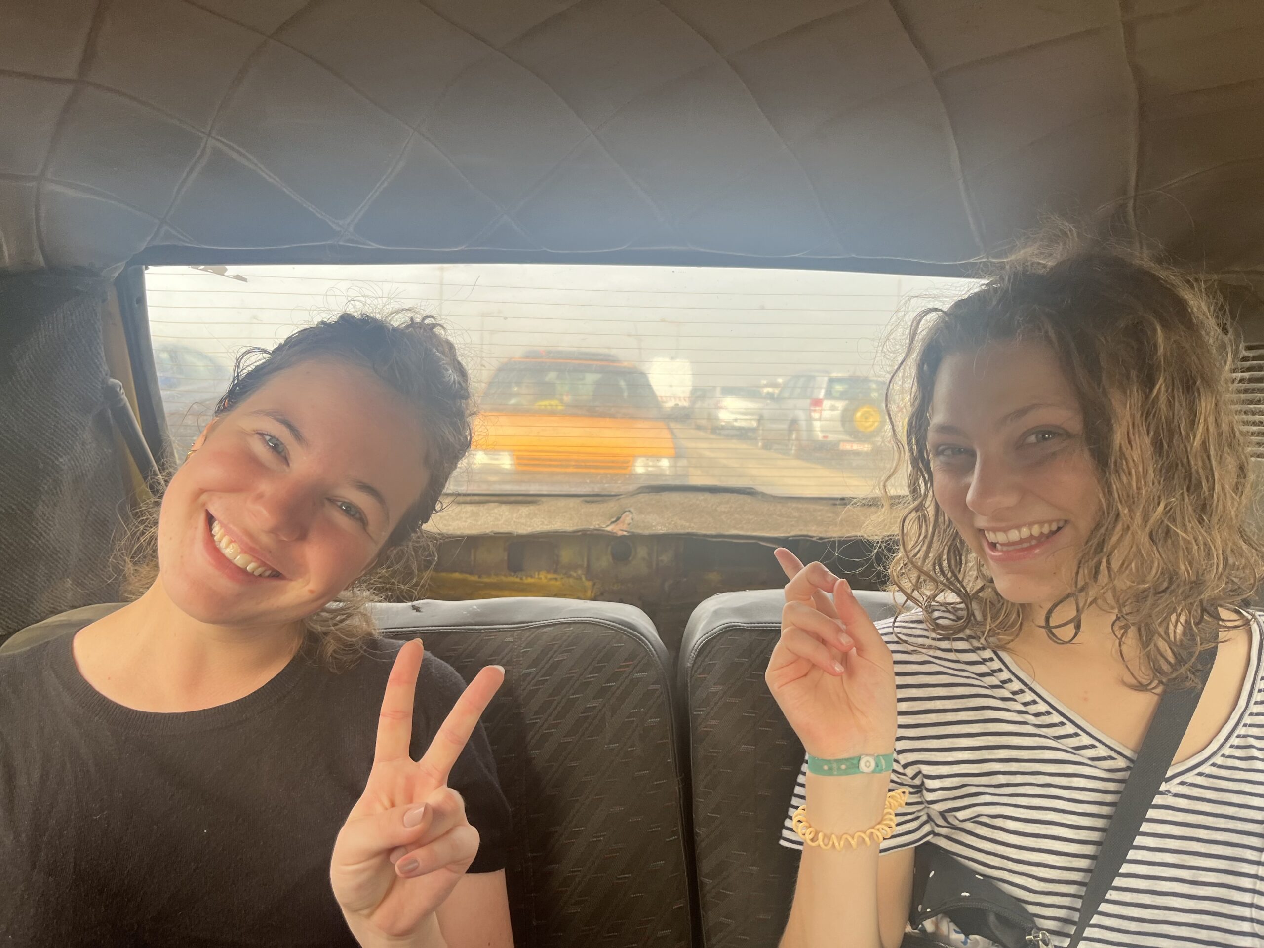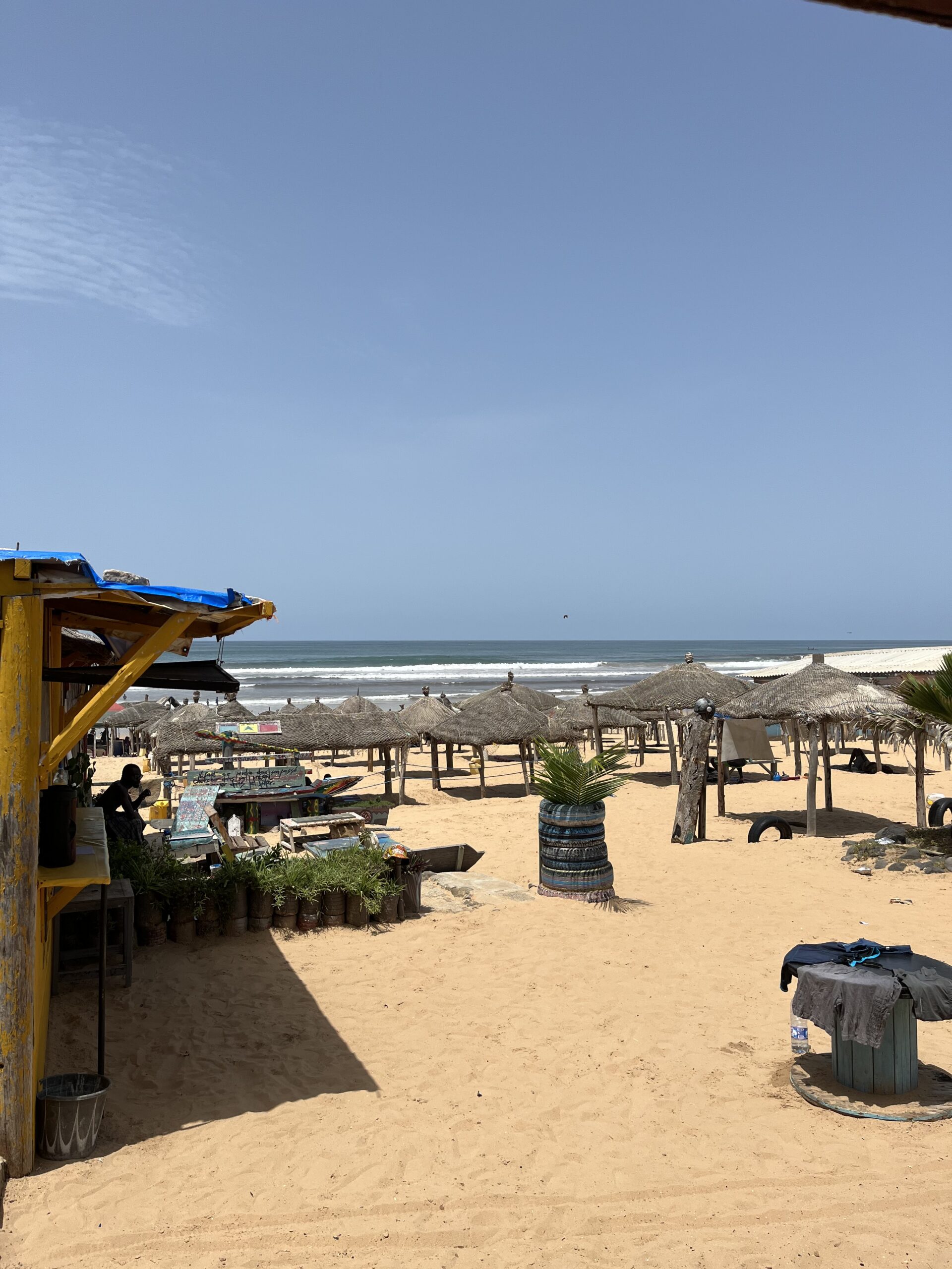 Naast werken heb ik deze week ook veel andere leuke dingen gedaan. Twee keer hebben we in een van de congreszalen, die je kunt reserveren, een film gekeken, gevolleybald op het dok, er was een verjaardag en op zaterdag zijn we naar het strand Yoff geweest. Dat was een groot avontuur, te beginnen met een taxi nemen in Dakar. Als je het schip afgaat en de haven uitloopt kom je al snel bij een drukke weg vol kraampjes, mensen en langsrazende taxi’s. Je hoeft hier geen taxi te zoeken want ze vinden jou wel. Zodra er een zwart met oranje roestbak voor je neus stopt, vertel je de chauffeur waar je heen wilt. Dan stelt hij een bedrag voor en dan probeer je meestal ongeveer de helft daarvan te betalen, maar dat moet je goed van tevoren bepalen want het is flink onderhandelen geblazen. Taxi ritjes zijn hier trouwens ontzettend goedkoop, zo’n vijf euro voor twintig minuten in de taxi en die prijs kan je nog verdelen onder de passagiers. De taxichauffeurs spreken vaak amper Engels, maar met handen en voeten is veel mogelijk. Onderweg naar Yoff vroeg de chauffeur aan ons of we ‘madames’ of ‘mademoiselles’ waren, oftewel getrouwd of ongetrouwd. Spontaan waren we alle drie ‘madames’ (getrouwd) en dat hielden we stug vol ook al geloofde de chauffeur er niks van. Na deze enerverende rit kwamen we aan op het strand. Prachtig. Snikheet, dat ook. Gelukkig waren er op het strand een soort overkapping, waaronder we konden zitten. Op het strand hebben we een surfles genomen, dat was echt leuk. Ik voelde de macht en kracht van de zee waar ‘onze’ Africa Mercy zich ook op begeeft. ‘Stand Firm’ was hier heel letterlijk van toepassing want ik moest echt vechten om met m’n surfboard überhaupt het water op te komen, maar op een gegeven moment hadden we de smaak te pakken. Moe maar voldaan gingen we terug naar het schip!