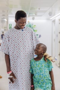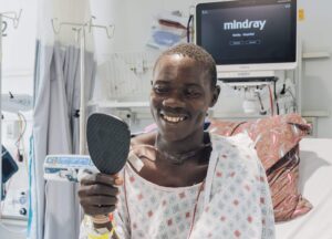 Dit is een van onze patiënten die een schildklier operatie heeft gehad. De oorzaak dat dit ontstaat is niet helemaal bekend. Maar het is een veel voorkomend probleem in Afrika. Thuis zou dit geopereerd worden als er een klein bultje ontstaat. Maar hier blijft het doorgroeien en ondanks dat het een goedaardig gezwel is kan het levensbedreigend worden omdat het door blijft groeien en uiteindelijk de luchtweg zal dichtdrukken. Deze patienten verzorgen in pacu is bijzonder. We zien ze niet voor de operatie, nog onzeker en ze schamen zich vaak voor hoe ze eruit zien, zijn verstoten door de gemeenschap waarin ze wonen. Na hun operatie is het resultaat direct zichbaar. De wonden zijn vaak alleen verbonden met een pleister wat maakt dat ze kunnen zien dat er geen zwelling meer is. Als ze wakker worden geven we ze een spiegel zodat ze zichzelf kunnen zien en meestal zien we direct een verschil. Ze krijgen een sparkel in hun ogen en een lach op hun gezicht.