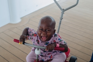 We hebben een patient gehad zij was een oudere vrouw. Ze vertelde na haar operatie haar verhaal. Ze leefde al een heel aantal jaar met een gezwel als hierboven. Ze was inmiddels verstoten van haar familie. Haar kleinkinderen wilde haar niet meer zien omdat ze geloven dat ze is vervloekt of behekst. We had dus geen familie die voor haar zorgde. Ze was depresief en was klaar om een einde te maken aan haar leven omdat ze zich zo vernederen en verlaten voelden. Toen hoorde ze over mercy ships en besloot het toch een kans te geven. Na haar operatie vertelde ze haar verhaal, ze schaamde zich ervoor en durfde het niet te delen vooraf. Maar nu ze haar leven terug had zag ze weer een toekomst en keek ze er naar uit om weer terug te gaan naar haar familie en gemeenschap en te delen over de liefde en zorg die ze hier aan boord mocht krijgen.