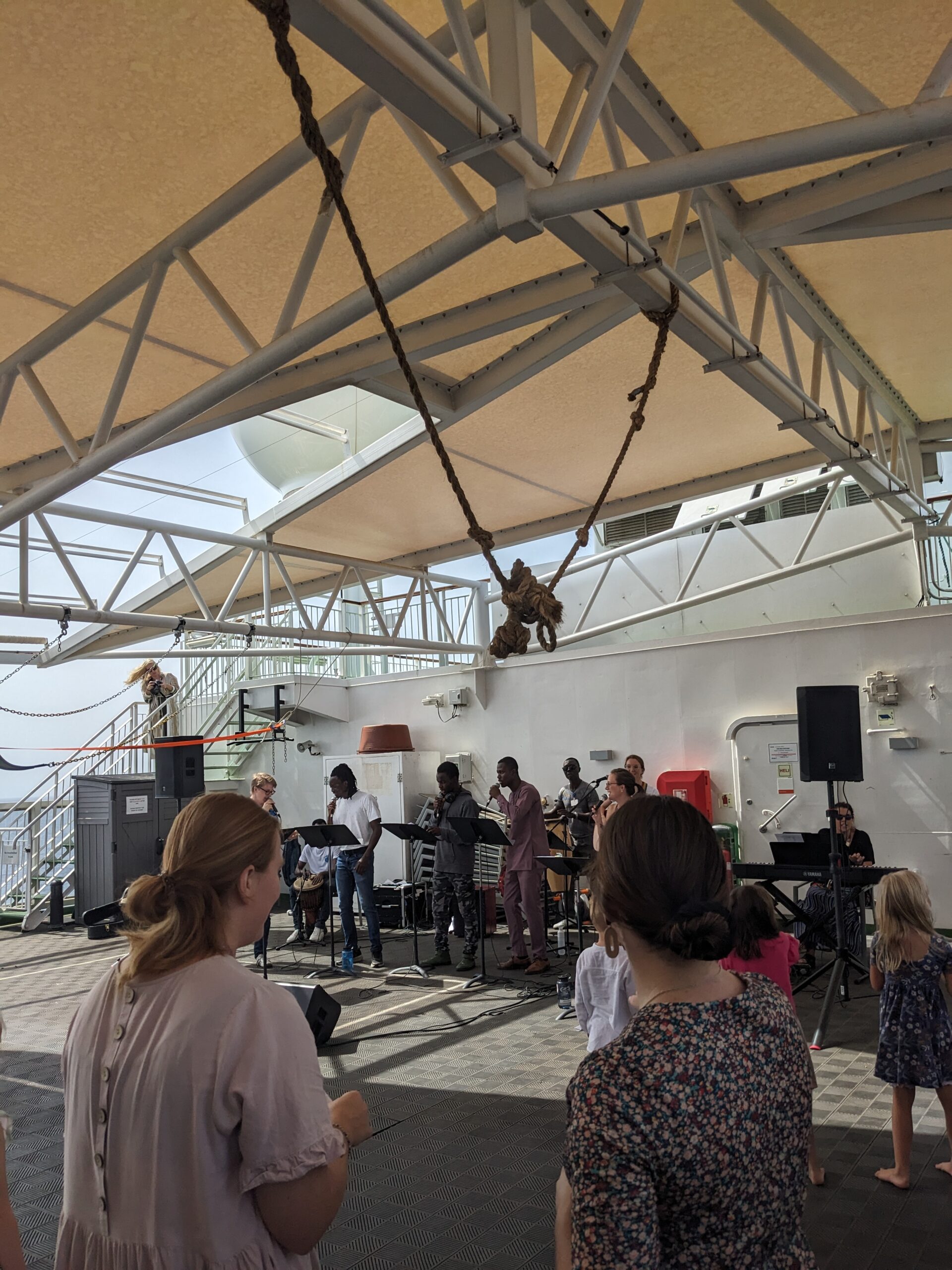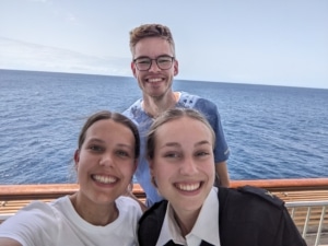 Tijdens de sail werden er verschillende activiteiten georganiseerd, zodat we wat leuke dingen konden doen, nu we een tijdje niet van boord kunnen. Er was een cornhole tournament, een volleyball toernooi, een filmavond buiten op deck 11, danslessen (met wat extra evenwichtsuitdagingen door de golven :)) en op zondagochtend was er Worship at Sea buiten op deck 11 met uitzicht over het water. Wat was het bijzonder om met mensen van over de hele wereld, midden op de oceaan, te zingen over de goedheid van God! God is good all the time and all the time God is good.