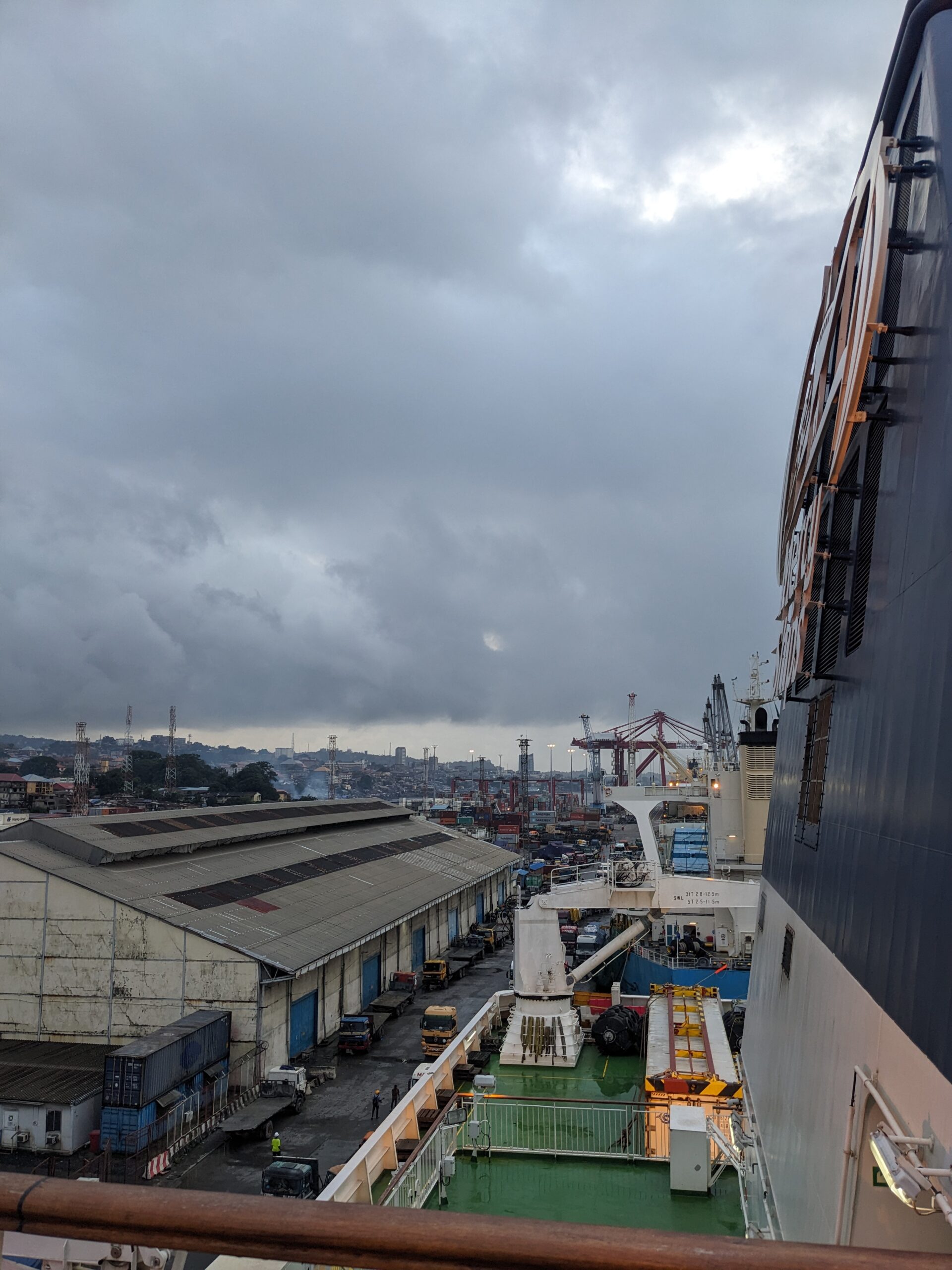 Nadat we waren aangekomen in Freetown duurde het tot ‘s middags de volgende dag, voordat we van het schip afmochten. We moesten namelijk eerst door immigration, hierbij kwamen er mensen aan boord van het schip om alle paspoorten te stempelen, een hele klus.