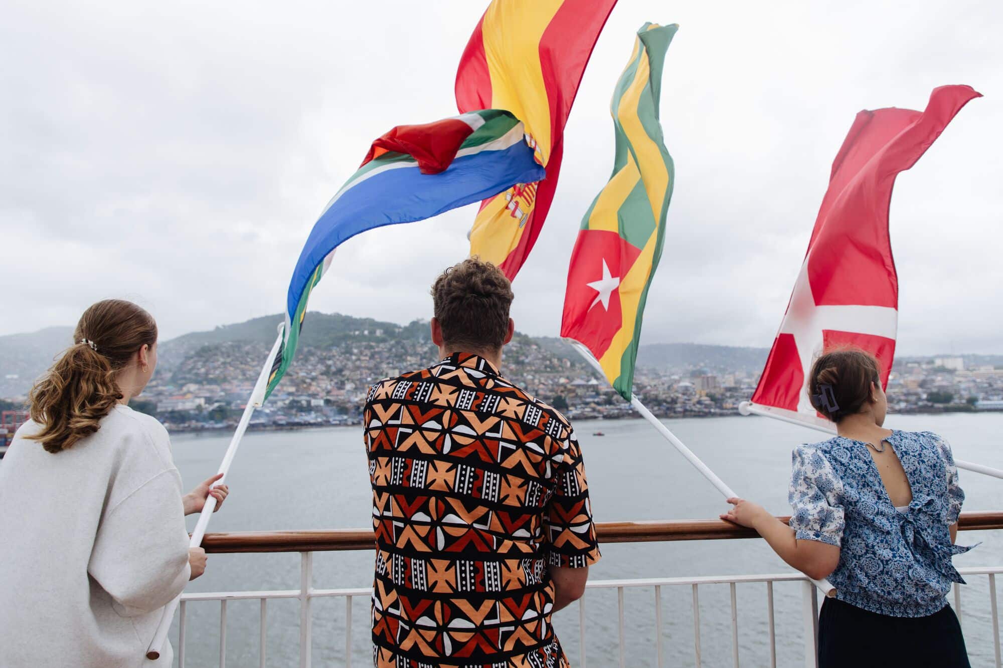 Op woensdag was het dan eindelijk zover, rond een uur of 15:00 zagen we voor het eerst in dagen weer land! Iets later, rond een uur of 17:30 kwamen we echt aan in de haven van Freetown. Zodra we in de buurt kwamen, zijn we met z’n allen bij de reling van het schip gaan staan met vlaggen van alle landen waar de vrijwilligers aan boord vandaan komen. Zo’n prachtig gezicht! Op de dock stonden mensen ons op te wachten, met instrumenten, zang en gedans werden we welkom geheten in het prachtige Sweet Salone. Zo onwerkelijk dat we hier nu echt zijn! De Global Mercy ligt weer in de haven van Freetown, het begin van een nieuwe fieldservice, waarin het schip opnieuw hoop en genezing mag brengen aan de allerarmsten in Afrika. Tel am tenki, tel am, Tel papa God Tenki! (Een lied in het Krio, dat we vaak op het schip zingen en dat ook op de dock gezongen werd toen we aankwamen in Freetown!).
