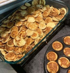 Ik zit ondertussen te denken aan wat er allemaal gebeurd is de afgelopen maand. Mijn gedachten dwalen af naar momenten waarin we genoten en deelden van ons ‘eigen eten’. Voor de Nederlanders was dat deze maand poffertjes, gewoon omdat het leuk is. En met de Senegalezen werd meerdere keren lakh of ngalakh op tafel getoverd in een grote schaal. En een grote schaal betekent: er kan altijd een lepeltje extra bij! Een van de jongens maakt het meestal klaar en brengt het ‘s avonds als dessert naar de eetzaal. Wie we vinden, deelt mee in het eten van deze zoete yoghurt gemengd met gerstemeel. Ik zou het geen straf vinden om dat elke ochtend als ontbijt te hebben 😉