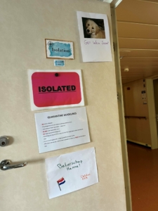 Wat me nu al opgevallen is, is dat iedereen zo ontzettend behulpzaam is. Om de haverklap klopt er iemand op de deur om te kijken of alles goed gaat, m’n deur is mooi versierd en ik krijg ook al berichtjes. Zelf vind ik het niet leuk dat ik hulpbehoevende moet beginnen, terwijl ik gekomen ben om te helpen. Maar ik ervaar wel de manier waarop de crew met hun patiënten omgaat en ik ben zeer onder de indruk. Ik hoop dat ik doordat ik nu weet hoe het is om patiënt te zijn, straks extra goed kan zorgen.