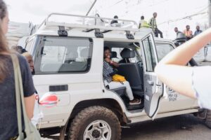 We hebben veel gedeeld over onze levens, en dat maakte het nog interessanter om uiteindelijk ook echt te zien waar ze woont, want ik had al veel verhalen gehoord! Het was een emotionele dag voor haar, toen we het ziekenhuis verlieten en in de auto zaten werd ze opeens heel stil, geen lach meer te zien op haar gezicht. Ik had haar nog nooit zo stil en zenuwachtig gezien. Maar toen we de bocht namen naar haar huis herkende iemand haar nog zo’n 100 meter voor haar huis. Die persoon begon te roepen en al snel begonnen mensen zich om de auto heen te verzamelen en mee te rennen en te roepen en te juichen. Toen zij en haar tante uitstapten werden ze verwelkomd door een grote groep die hen allemaal knuffelden en spontaan liederen begonnen te zingen en te dansen.