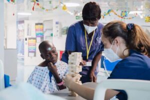 De meeste operaties van de dag vinden plaats in de oogkliniek. Hier worden aan de lopende band patiënten geholpen aan staar. Staar kan er op lange termijn voor zorgen dat je volledig blind wordt. Een staar operatie kan dan ook echt blinden weer doen zien. zo’n 6 weken na de operatie is er een celebration of sight. Hierbij worden de verbanden van het oog gehaald en wordt gevierd dat een patiënt weer kan zien! Het is een relatief kleine ingreep en patiënten gaan dezelfde dag weer naar huis, maar dat het levensveranderend is, dat kan je je denk ik wel voorstellen!