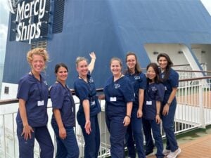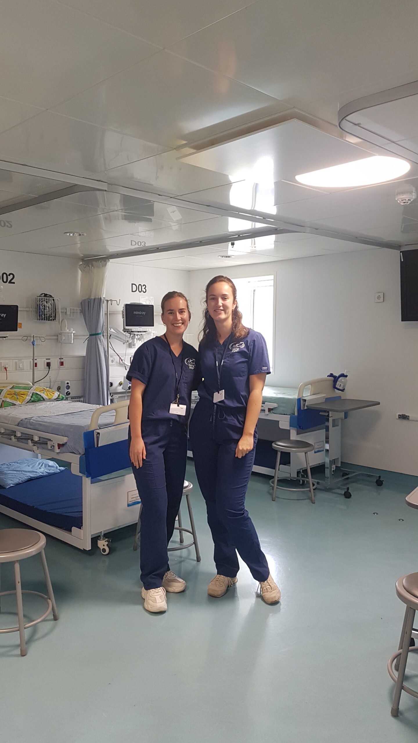 Door de week aan voorbereiding en lessen over de verschillende ziektebeelden waren alle nieuwe verpleegkundigen wel wat gespannen om te beginnen aan de eerste diensten. De informatie die we kregen vooraf was in sommige opzichten best wel indrukwekkend en in combinatie met de cultuurverschillen en het leren leven aan boord bouwde de spanning voor de eerste diensten langzaam op. Maar.. het viel alles mee 😉 Er worden per dag afhankelijk van de grote van de operatie, per specialisme zo’n 1-3 operaties uitgevoerd, meer past er praktisch gezien gewoon niet in de planning van de chirurg. Dit betekend dat het aantal patiënten ook langzaam opbouwt en dat je dus als verpleegkundigen ook rustig in kan komen.