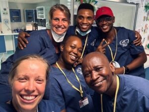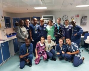 Toen ik aankwam in Sierra Leone waren wij met een hele groep van bijna wel 40 mesen. Hier zijn er de afgelopen week ook veel van vertrokken. Het afscheid nemen is wel een van de meest moeilijke dingen op het schip. Zoals ik eerder schreef bouw je hier zo enorm snel vriendschappen op. Het is dan best gek om elkaar gedag te zeggen wetende dat de kans niet heel groot is dat je elkaar nog een keer gaat zien. We maken van elk afscheid een echt moment, waarin we met veel vrijwilligers gedag komen zeggen, dus ook dat maakt weer indruk. Na een afscheid gaat iedereen weer verder met de orde van de dag en heb je eigenlijk niet eens tijd om stil te staan bij dit gedag zeggen..