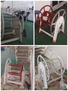 08:00     Na achten kunnen we aan de slag. Werkzaamheden zijn varierend, maar er is altijd wel wat te verven. We verwijderen roest en brengen vervolgens de primer en de verf aan. Ook houden we de dekken schoon en verzorgen we het laden van etenswaar en het afvoeren van afval met behulp van de kraan aan boord.