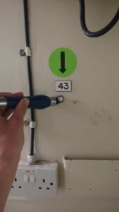 Als deck department verzorgen wij de nachtwacht. Ik ben deze week aan de beurt om de functie ‘night patrol’ uit te voeren. Dit houdt in het lopen van wachtrondes door het hele schip. Er is een route door het schip aan de hand van 44 locaties. Met behulp van een electronisch apparaatje en een fysiek punt op een wand op het schip registreer ik waar ik geweest ben (zie foto). Dit wordt vervolgens geupload via het netwerk. Het doel van de nachtelijke rondes is het controleren op eventuele gevaren. Ik ben via radio in contact met de receptie waar ze alarmen binnenkrijgen van de rook en warmte melders. De night patrol is de eerste die op onderzoek uitgaat bij zo’n alarm.