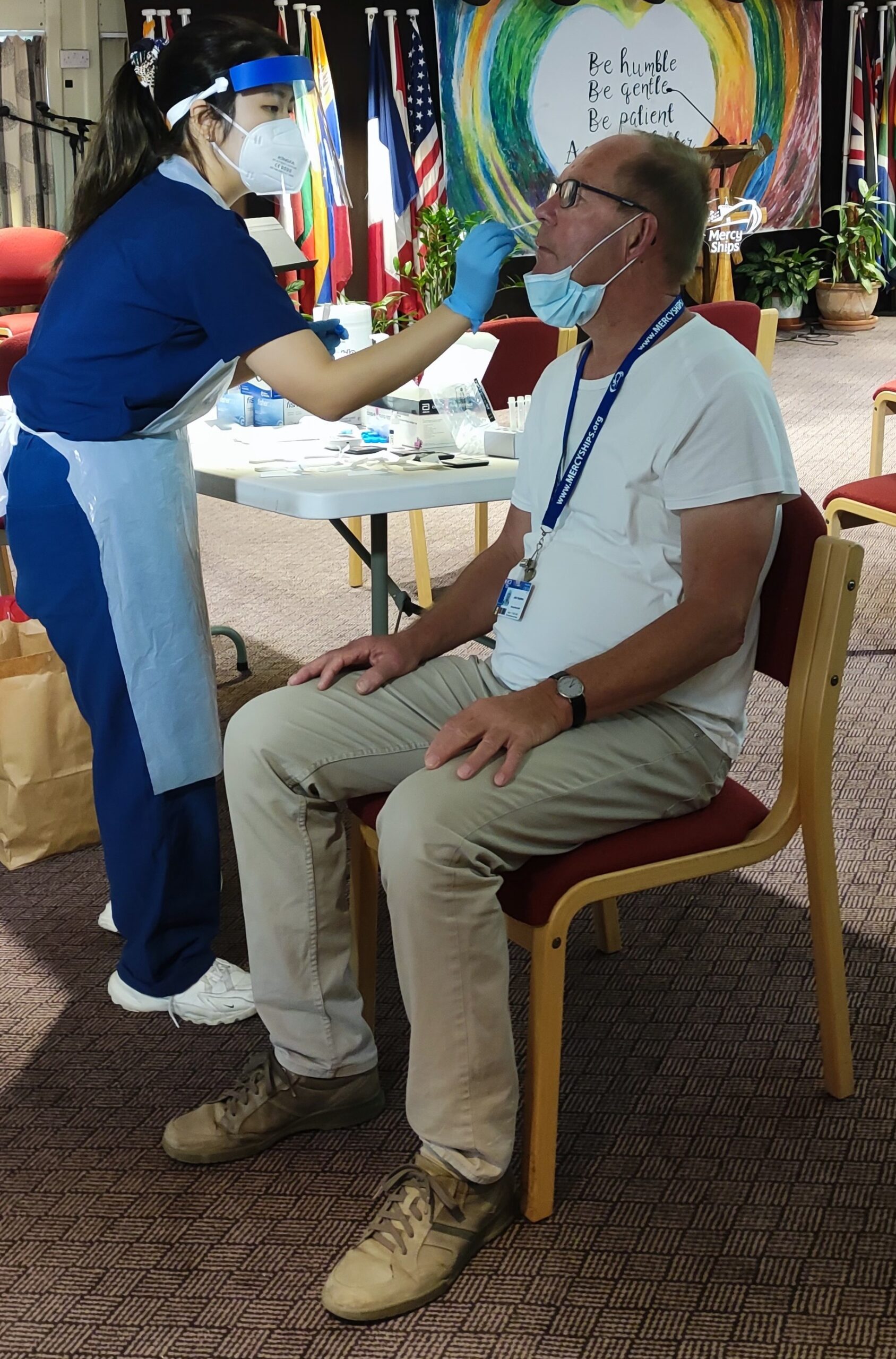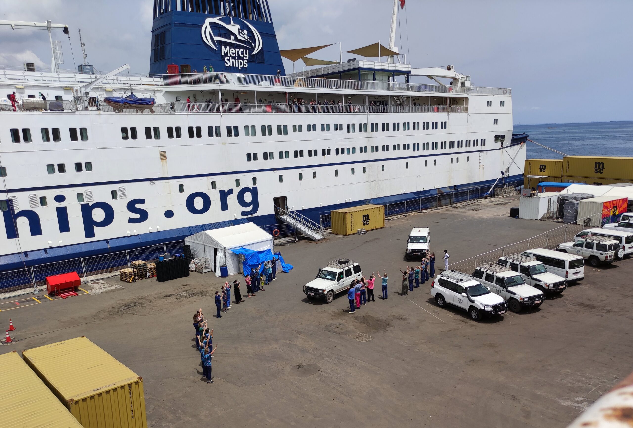 Regelmatig worden er patiënten ontslagen vanuit het ziekenhuis op dek 2, om verder te revalideren in het Hope center. Het Hope center is een gebouw met een buitenplaats en bevindt zich in Dakar ongeveer 20 minuten rijden vanaf schip. De patiënten verblijven in het Hope center totdat ze naar huis kunnen. Vaak is er nog Fysio of wondzorg nodig en dat wordt dan van daaruit geregeld. Bij zo’n ontslag wordt dan aan alle bemanning gevraagd om deze patiënten uit te zwaaien. Als wij op het schip aanwezig zijn en niet aan het werk zijn zwaaien we graag mee.