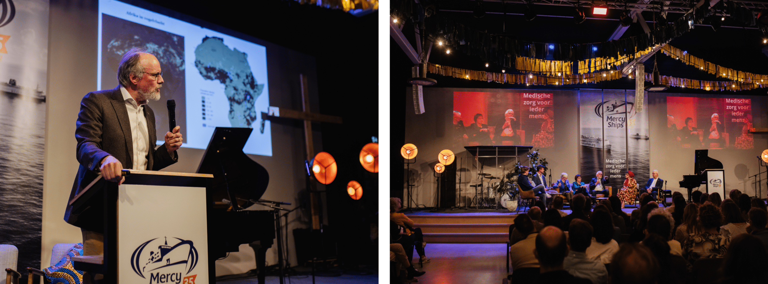Klimaatverandering, een tekort van 4.3 miljoen artsen en te weinig ‘ubuntu’ op nationaal niveau: het zijn enkele risico’s voor de toekomst van het continent Afrika die Evert-Jan Ouweneel in de jubileumlezing van Mercy Ships Nederland op 19 maart aanstipte – naast kansen op het gebied van landbouw, eigen productie met grondstoffen en technologische innovatie. Op de jubileumavond ter gelegenheid van 35 jaar Mercy Ships Nederland werd vooruitgeblikt en teruggekeken op het werk van Mercy Ships zelf en op ontwikkelingswerk in het algemeen.