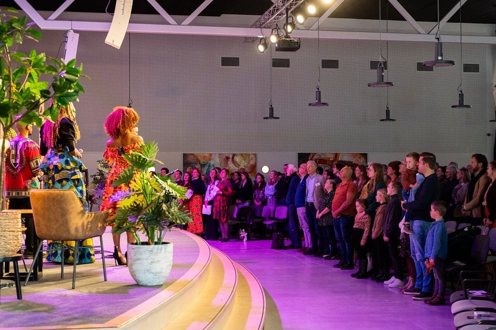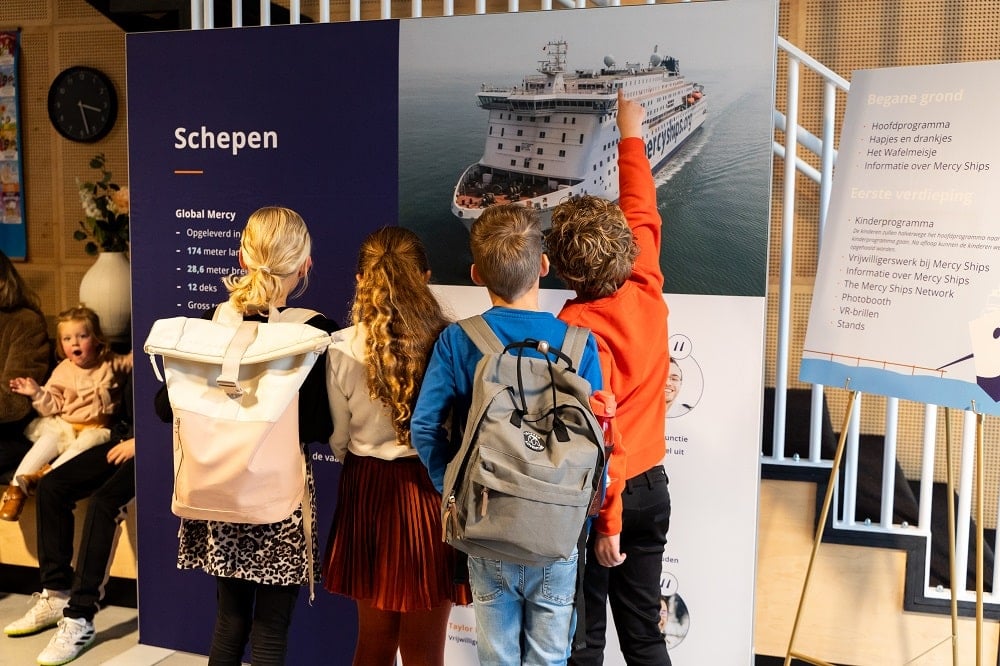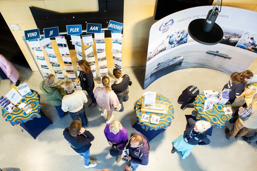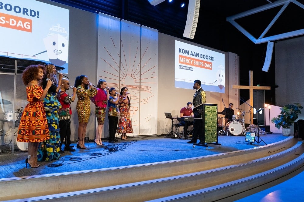 Op zaterdag 9 november 2024 vond de Mercy Ships-dag plaats in Amersfoort met als thema ‘Kom aan boord’. Honderden Mercy Ships-supporters namen een kijkje ‘aan boord’ van onze missie. Met updates van de ziekenhuisschepen, een videotour aan boord door de familie Joosse en live-interviews met diverse vrijwilligers werden bezoekers meegenomen in het werk van Mercy Ships. Dagvoorzitter Heilke de Heer, die zelf jarenlang op de Mercy Ships woonde en werkte, leidde deze mooie dag in haar Afrikaanse outfit.