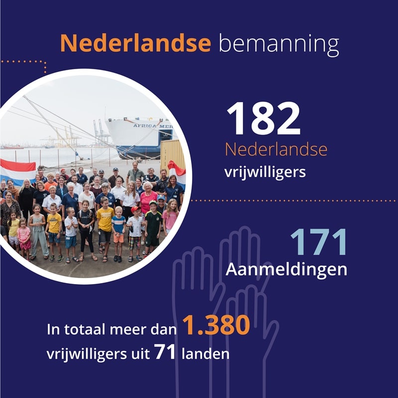 In Nederland richt Mercy Ships zich erop om het werk op de schepen en aan wal zoveel mogelijk te ondersteunen met vrijwilligers, materialen, gebed en financiële middelen.