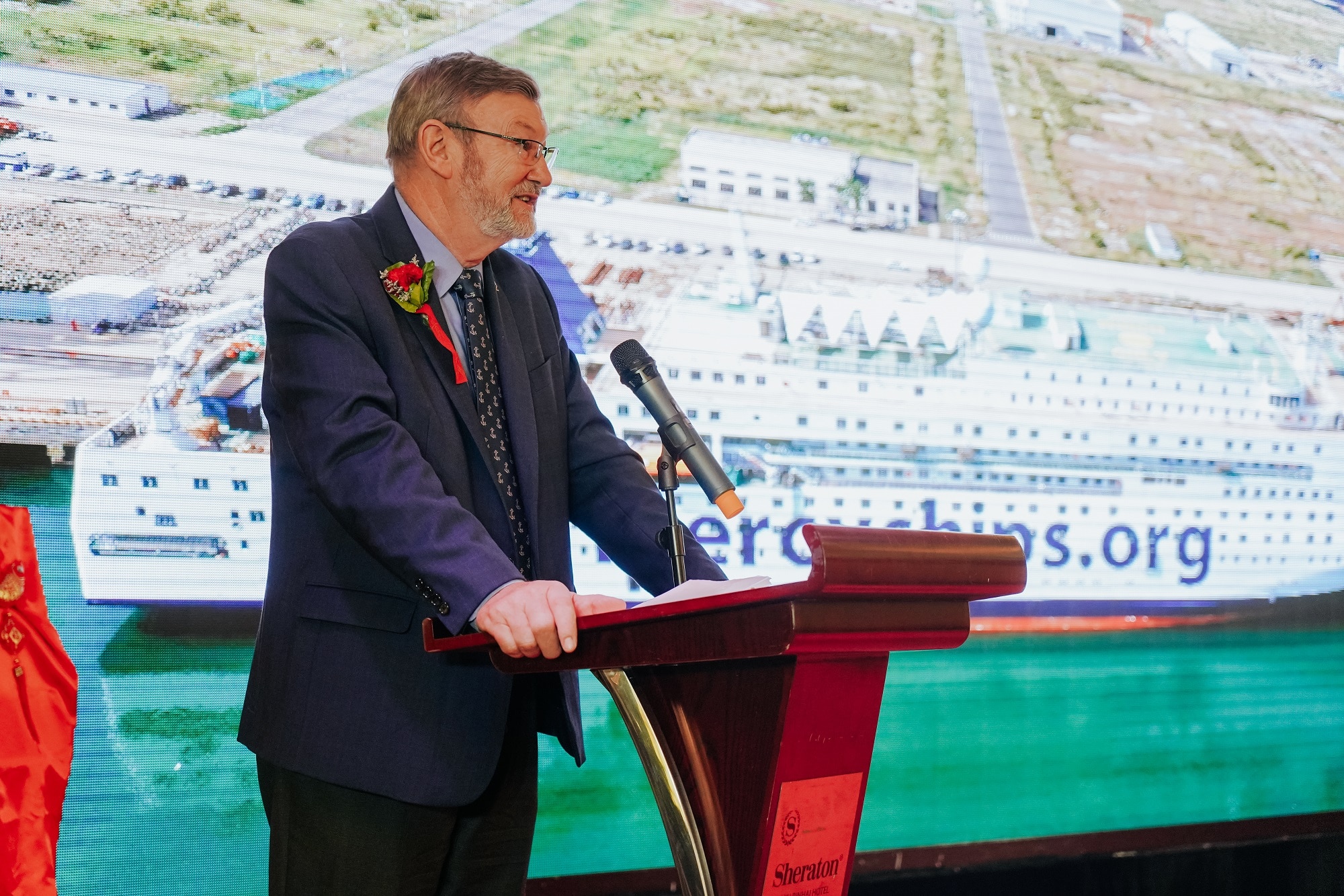 Ook Jim Paterson van Mercy Ships hield een toespraak tijdens de opleveringsceremonie