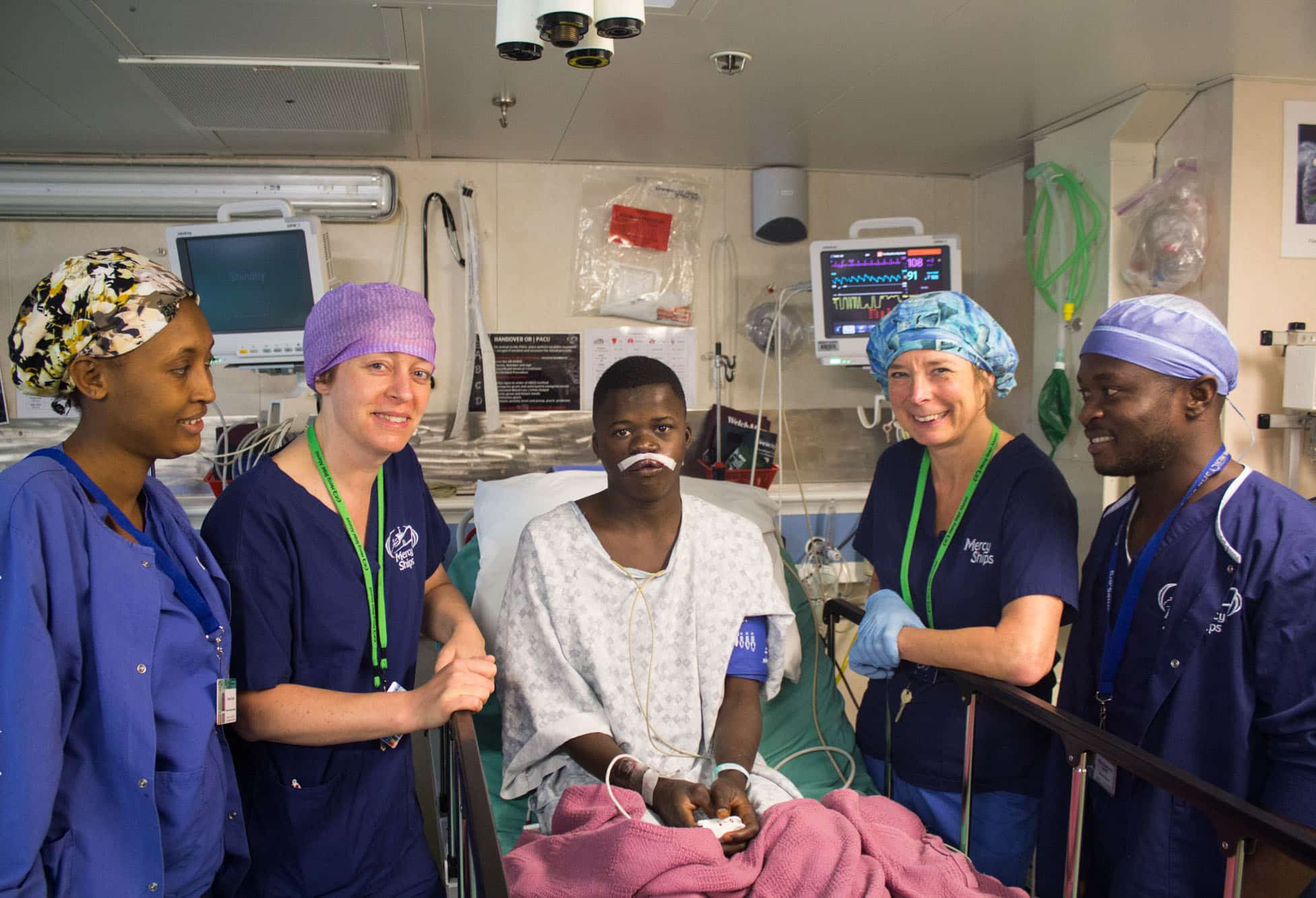 Marga kan het zich nog goed herinneren, haar eerste periode aan boord. ‘Het schip lag in de haven van Freetown in Sierra Leone. De burgeroorlog was net achter de rug. Aan boord behandelen we normaal gesproken aandoeningen als tumoren, schisis en krom gegroeide benen. Maar nu kwamen er ook patiënten binnen met oorlogswonden, zoals bijvoorbeeld afgehakte ledematen. Dat was erg heftig om te zien. Maar het chirurgisch team is altijd vastbesloten om er het beste van te maken en iedere patiënt weer nieuwe hoop en een nieuwe toekomst te geven. Dat is ook één van de redenen waarom ik telkens terugkeer naar het schip. Ik word telkens geraakt door het verhaal achter de mens. Sommige mensen worden namelijk vervloekt of verstoten in hun eigen dorp of gemeenschap, alleen omdat ze een fistel of tumor hebben. Kinderen worden te vondeling gelegd, omdat ouders denken dat hun kind met een open gehemelte een boze geest heeft. Als je ze dan een nieuwe kans kan geven, geef je ze ook meteen uitzicht op een nieuw leven. Dat is zo ontzettend mooi!’