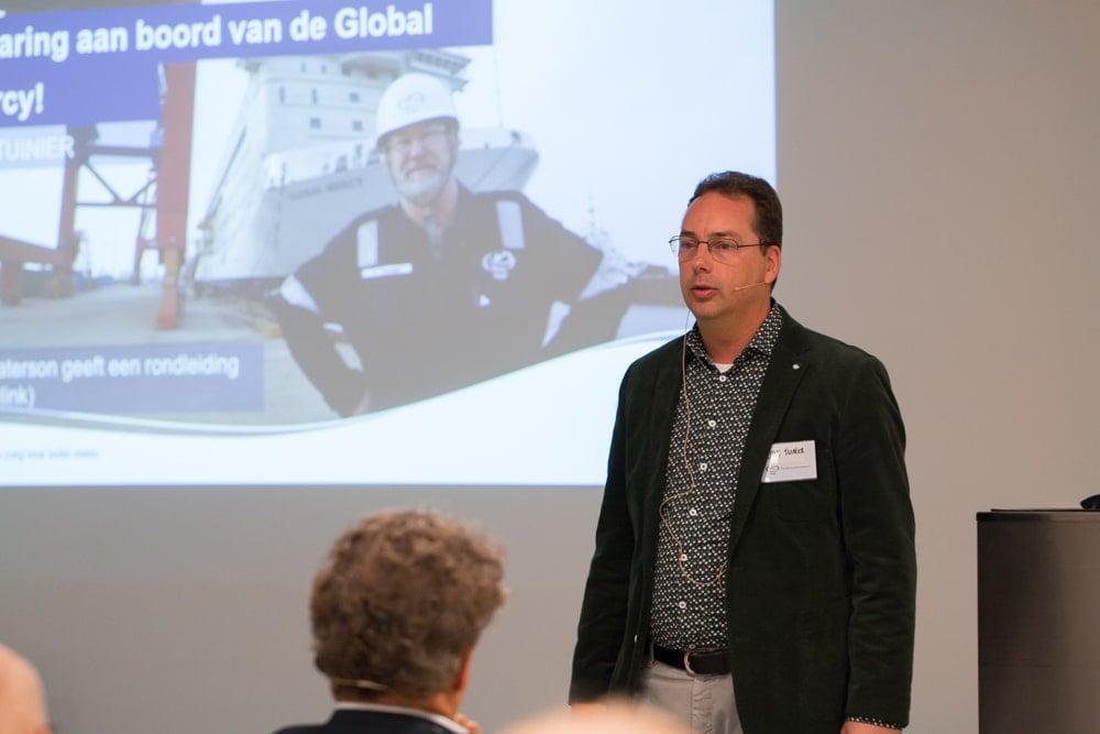 Na de smaakvolle hapjes en gezellige rondleiding komt de nieuwe directeur van Mercy Ships Holland, Martijn Provily, aan het woord: ‘Normaal gesprokenhad ik nu in de bergen gelopen, maar deze avond is natuurlijk veel belangrijker. Via mijn dochter ben ik in aanraking gekomen met Mercy Ships. Voor mij was de beslissing om directeur te worden een ‘kairos moment; een specifiek moment waarin je stil wordt gezet, een moment in de tijd dat je een bewuste keuze moet maken.’